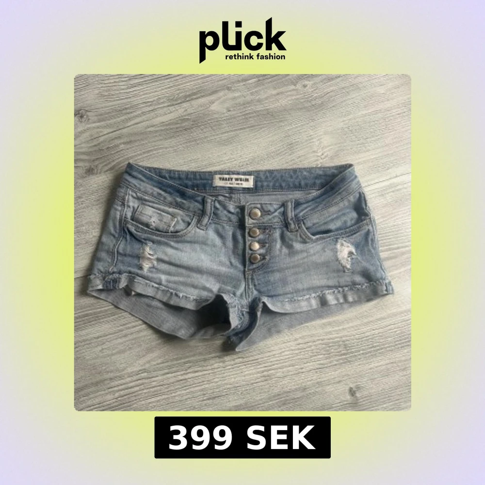 Snygga ljusblå jeansshorts från Tally Weijl med slitna detaljer. Modellen är lågmidjad. Skriv för mått