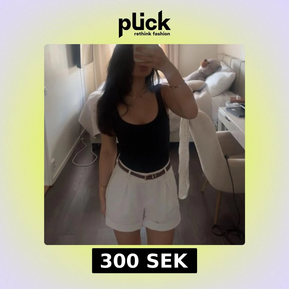 Snygga vita shorts med hög midja och breda uppvikta benslut. De har stilrena veck framtill som ger en cool och dressad vibe. Perfekta för sommarens alla häng och passar till både t-shirt och skjorta. Materialet känns lätt och luftigt.