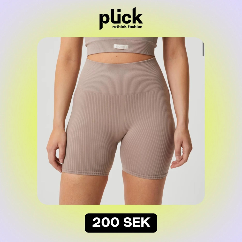 Beige ribbade träningsshorts