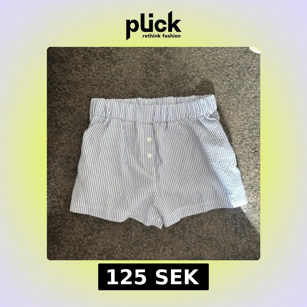 Snygga blåvitrandiga shorts med resår i midjan och två vita knappar framtill. Tillverkade i ett lätt och luftigt bomullstyg, perfekta för varma dagar. Perfekt för stranden och soliga dagar! Aldrig använda