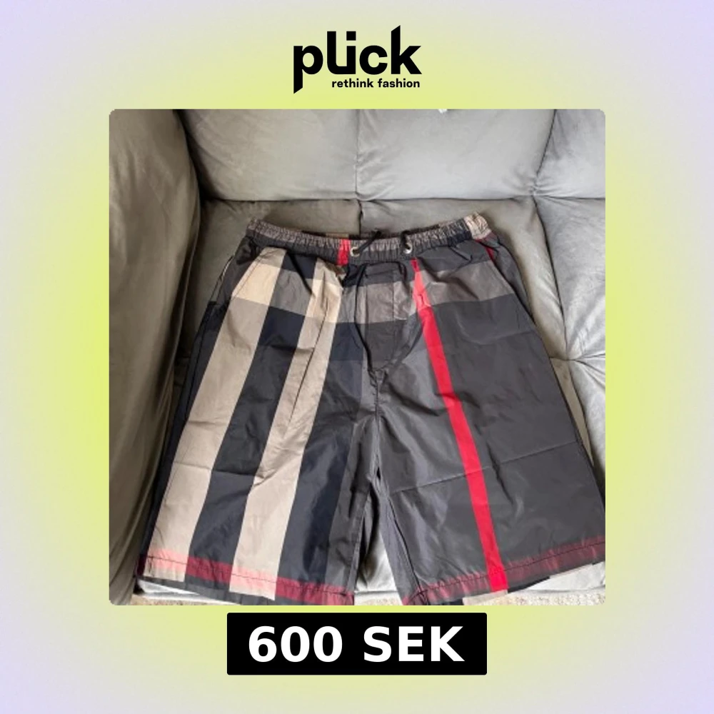 Shorts med stort rutigt mönster i svart, beige och grått samt en tydlig röd rand. Resår i midjan med snörning och fickor på sidorna. Perfekta för sommaren och har en avslappnad passform.