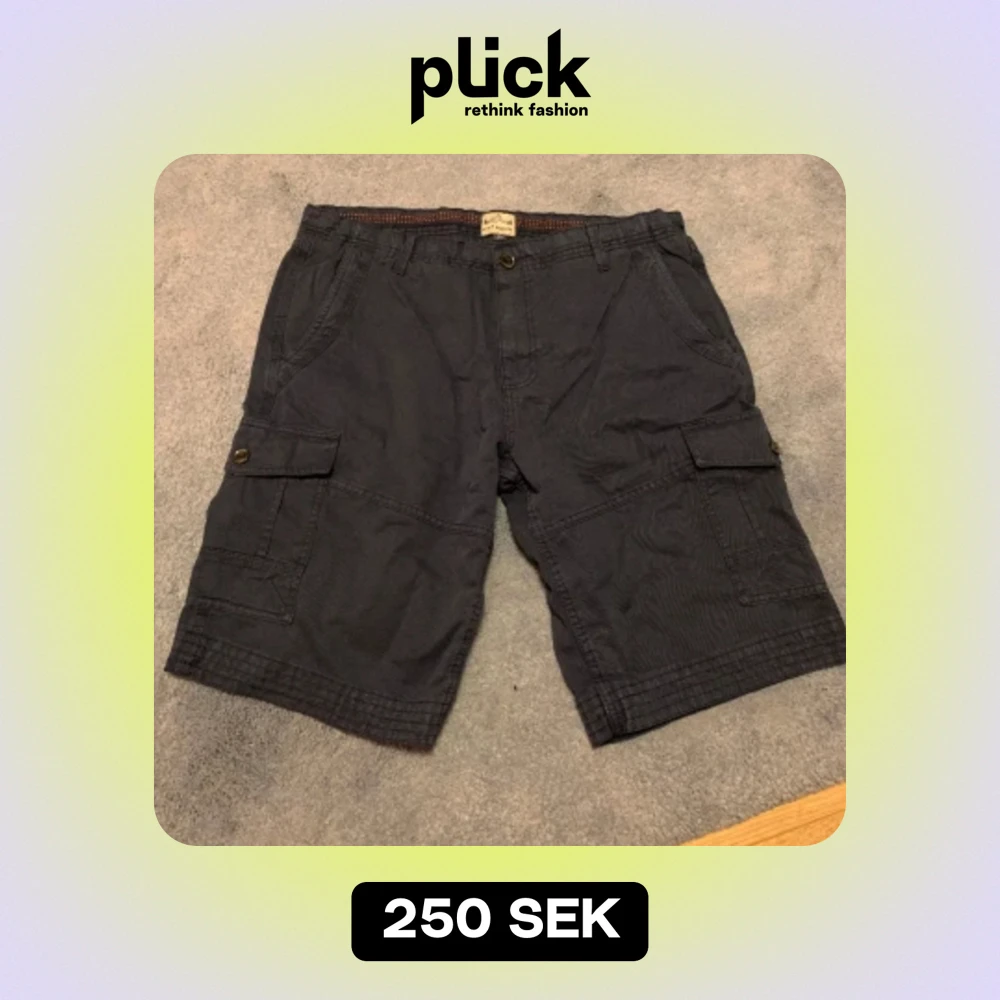 Snygga mörkblåa cargoshorts i herrmodell från NEXT. Rak passform med fickor bak, fram och på sidorna.