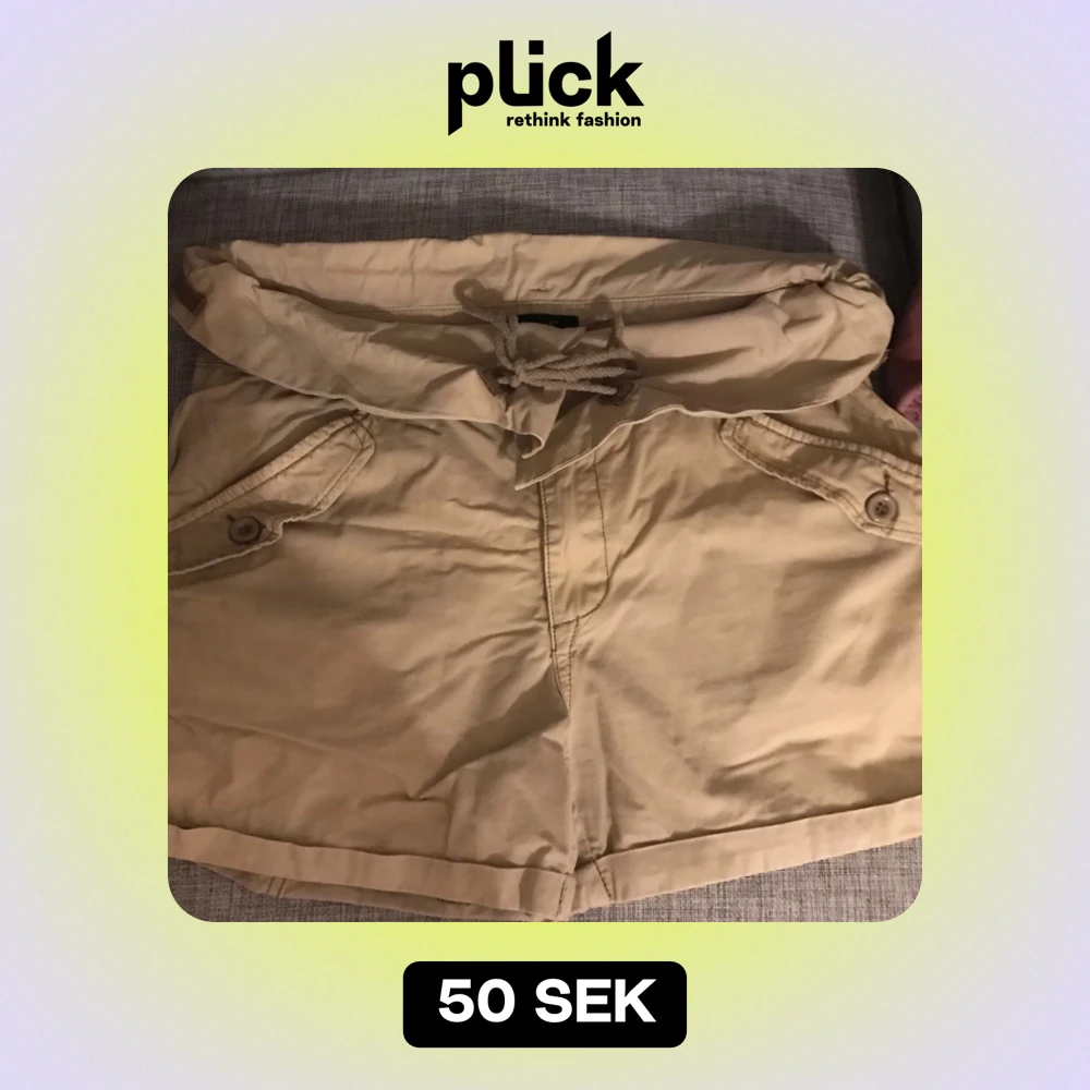 Snygga beige shorts från Sisters Point i storlek L. De har en bekväm loose passform med knappar och snörning i midjan. Perfekta för sommardagar eller en avslappnad vårlook. Materialet känns som bomull och de har praktiska fickor framtill.
