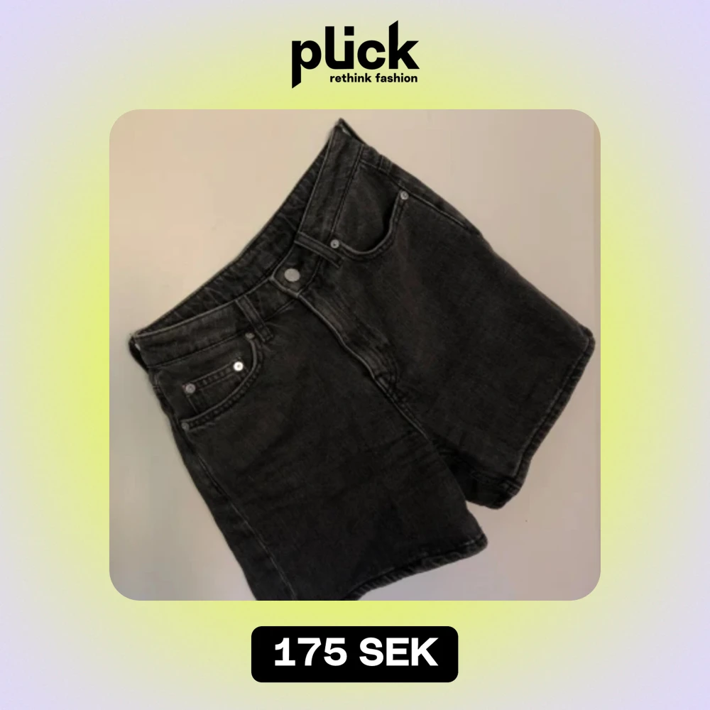 Högmidjade stengrå denimshorts i modellen Eya från Weekday. Storlek 25. Mycket bra skick🖤