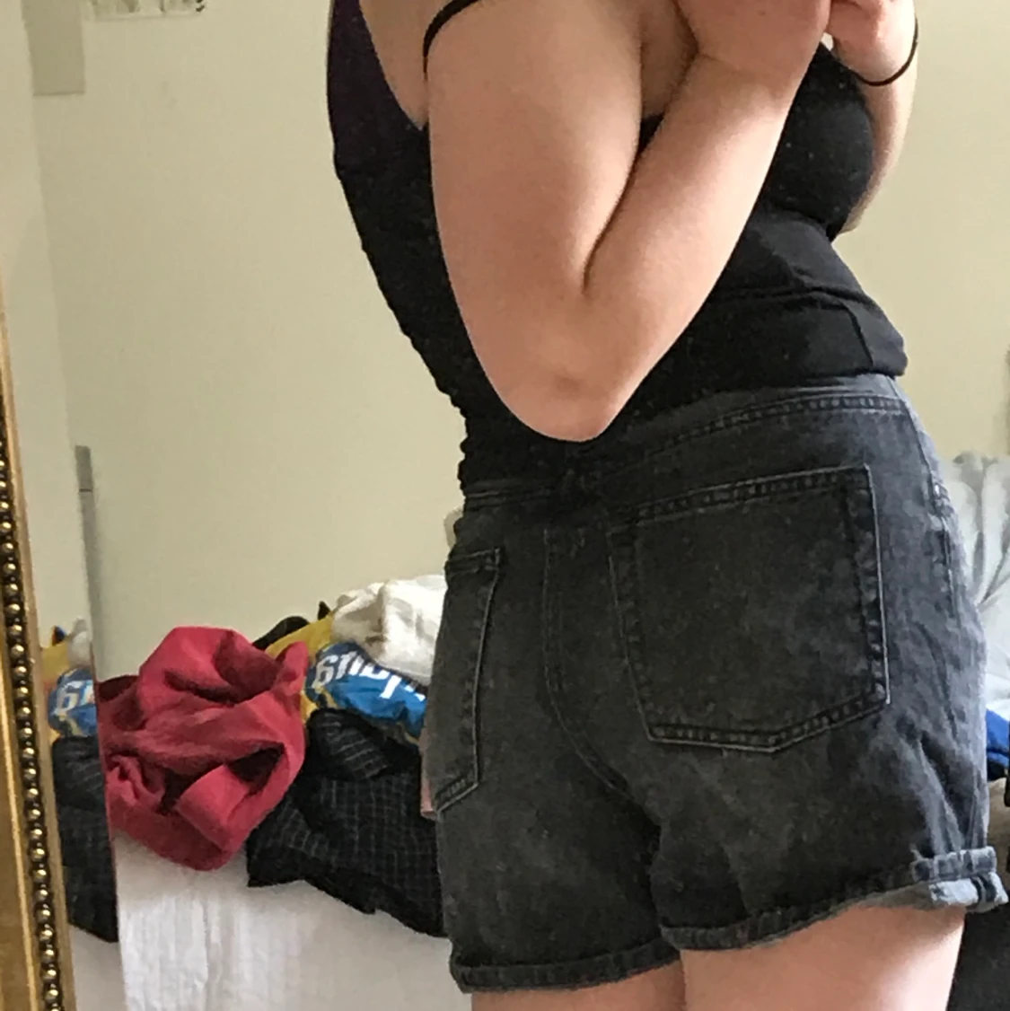 jättesnygga svarta jeansshorts som jag köpte förra sommaren tror jag, dem är tyvärr små i storleken! defenetivt mer en S än M som det står på lappen. dem är högmidjade och medellånga, går jäättebra att vika upp och passar med allt! <33