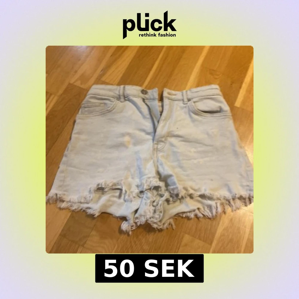 Snygga ljusblå jeansshorts från H&M Divided med hög midja och fransig, rå kant nertill. Klassisk femficksmodell med knapp och dragkedja framtill. Perfekta för sommardagar och festivalhäng.