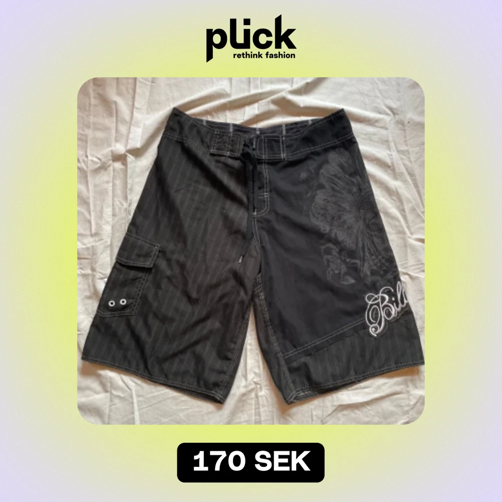 Svarta Billabong shorts att ha på sig hela sommaren. Passar på stan, stranden och i stugan! Dödskalle på vänstra sidan, ficka på höger sida. Kardborre och snörning som knäppe. Två små hål innanför kardborren (se bild 3) som ej syns när de är på.