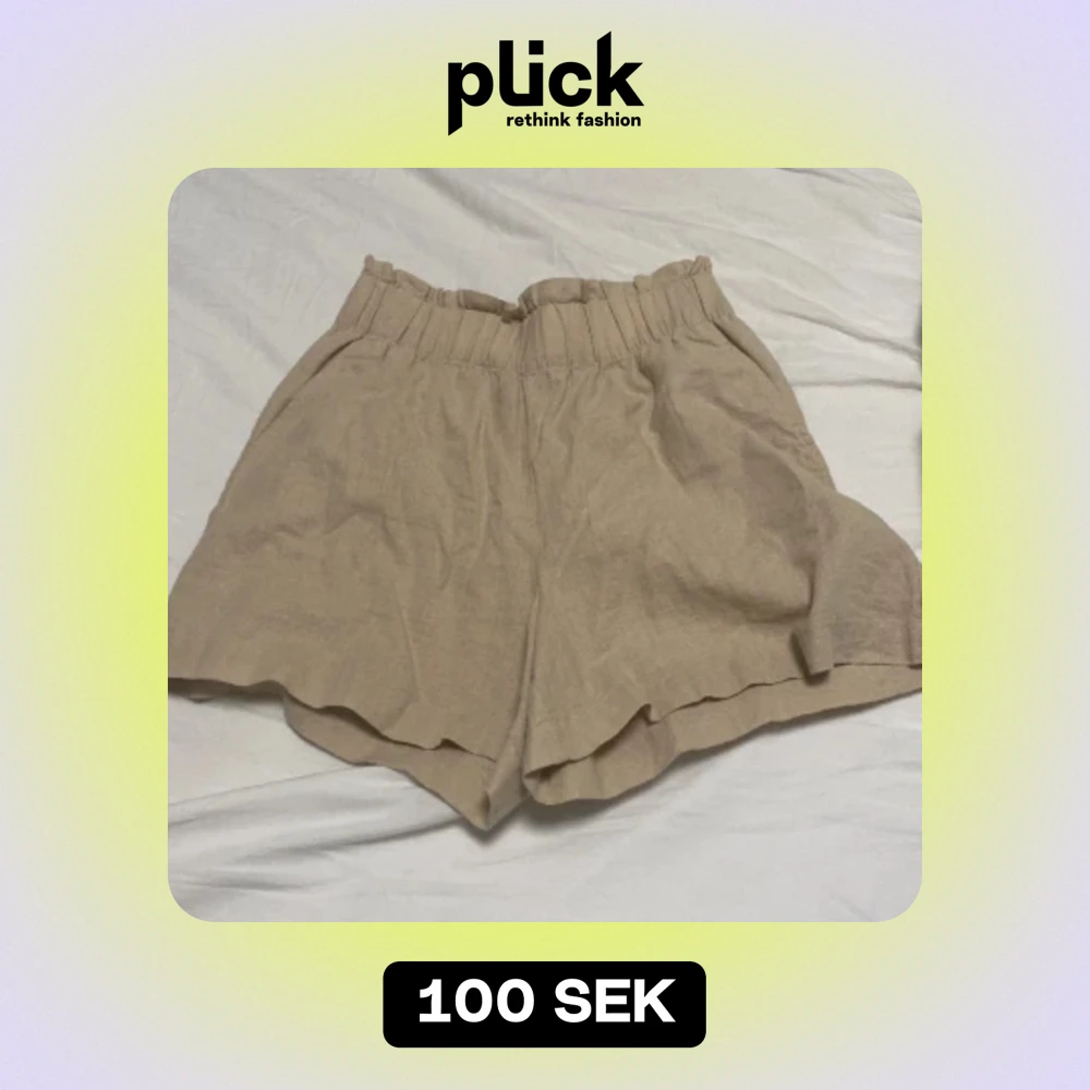 Linne shorts jätte fina men var för stora dom är bara prövade. De går att ha hög midiat och låg midiat om man viker ner kanten kontakta mig för fler bilder eller om in undrar något priset går att diskutera
