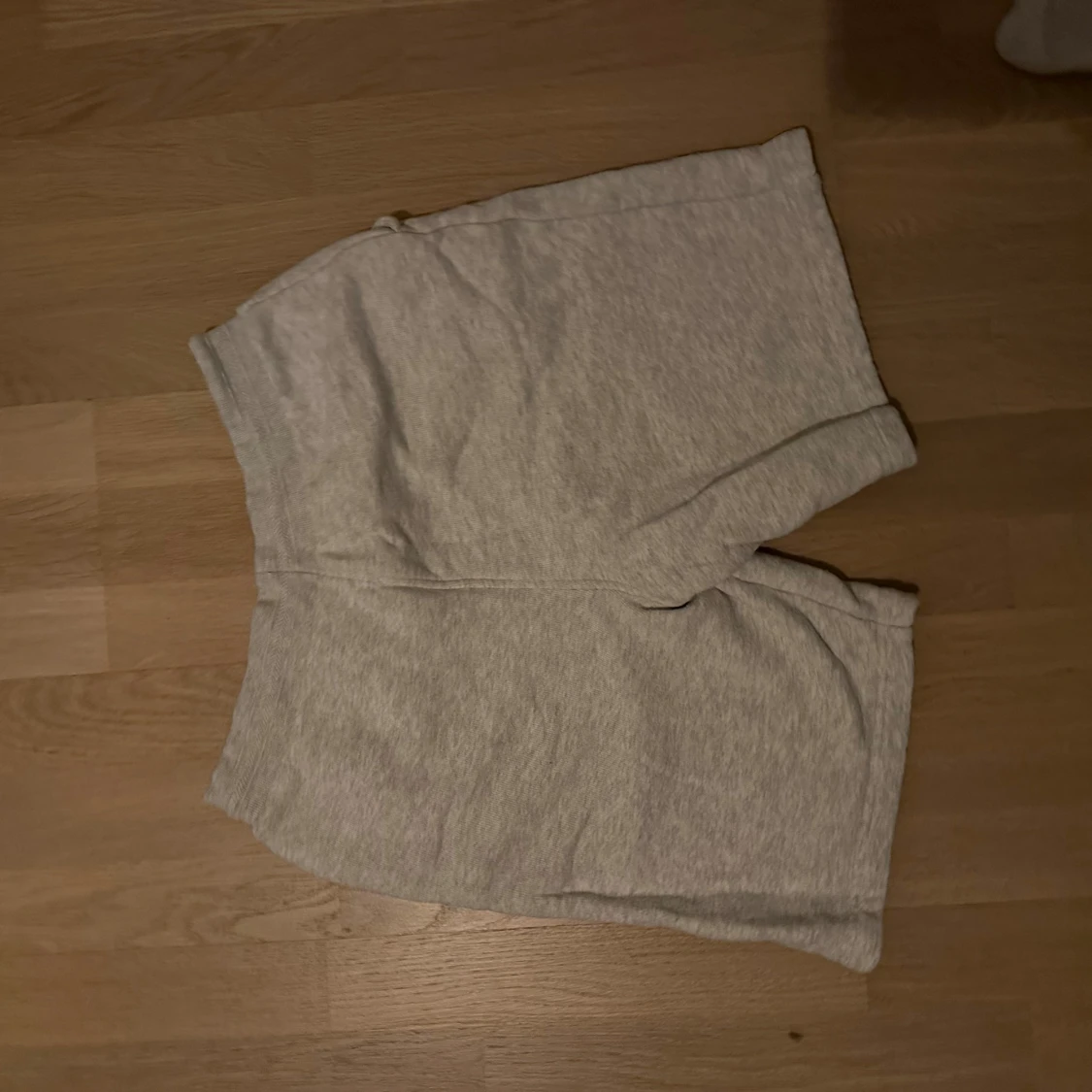 Säljer ett par ljusgrå sweatshorts från Gant med GANT USA-logga på benet. Shortsen har snörning i midjan och är tillverkade i mjuk bomullsmix, perfekta för chill dagar eller träning. Klassisk och avslappnad passform med fickor på sidorna.