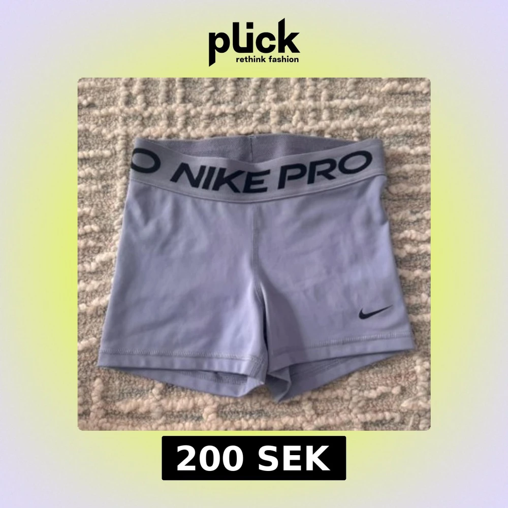 Snygga grå träningsshorts från Nike med elastisk midja och Nike Pro-logga. Perfekta för intensiva träningspass. De har en tight passform och är tillverkade i ett mjukt och stretchigt material för maximal komfort. Storlek L men är små i storlek och passar M - S då de är stretchiga💙 40cm rakt över