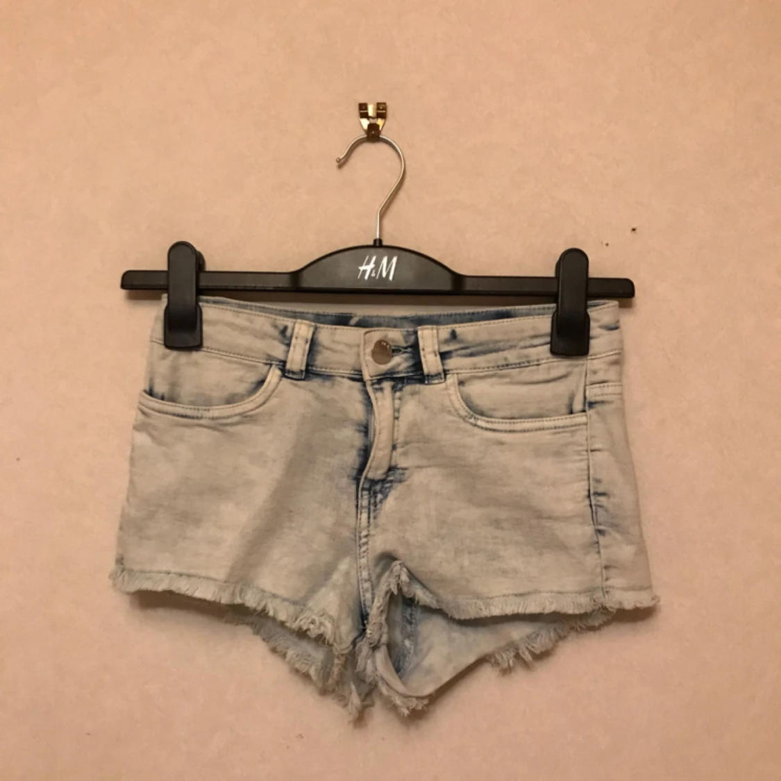 Ljusa jeansshorts från H&M i storlek 34. Sparsamt använda. Medelhög midja. Frakt tillkommer!