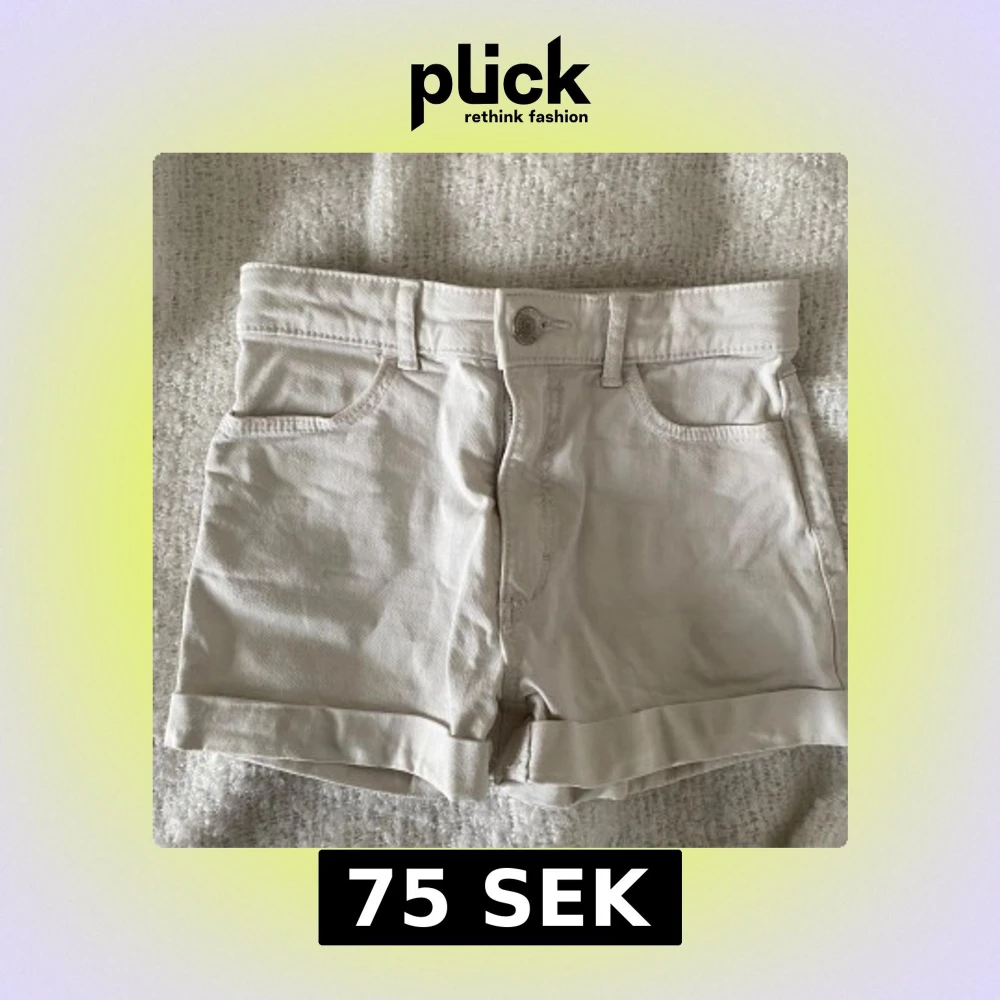 Snygga vita shorts med uppvikta ben. Perfekta för varma sommardagar. De har en knapp och dragkedja framtill för enkel påklädning. Superfint skick. Inga hål. Inga fläckar.