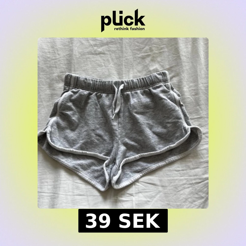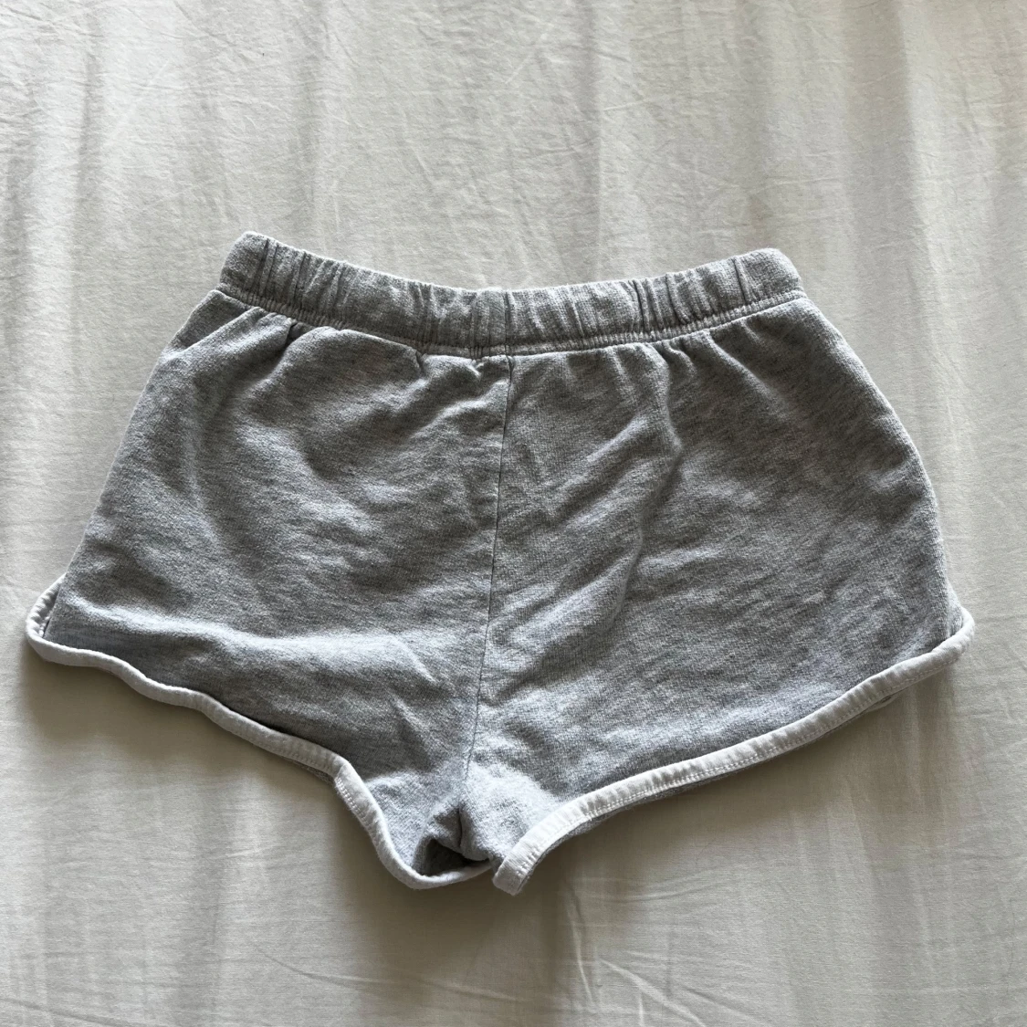 Snygga grå shorts från H&M med vit kant och snörning i midjan. De är tillverkade i 100% bomull och har en loose passform med elastisk midja. Perfekta för chill dagar eller träning. Klassisk sportig look med rundade benkanter.