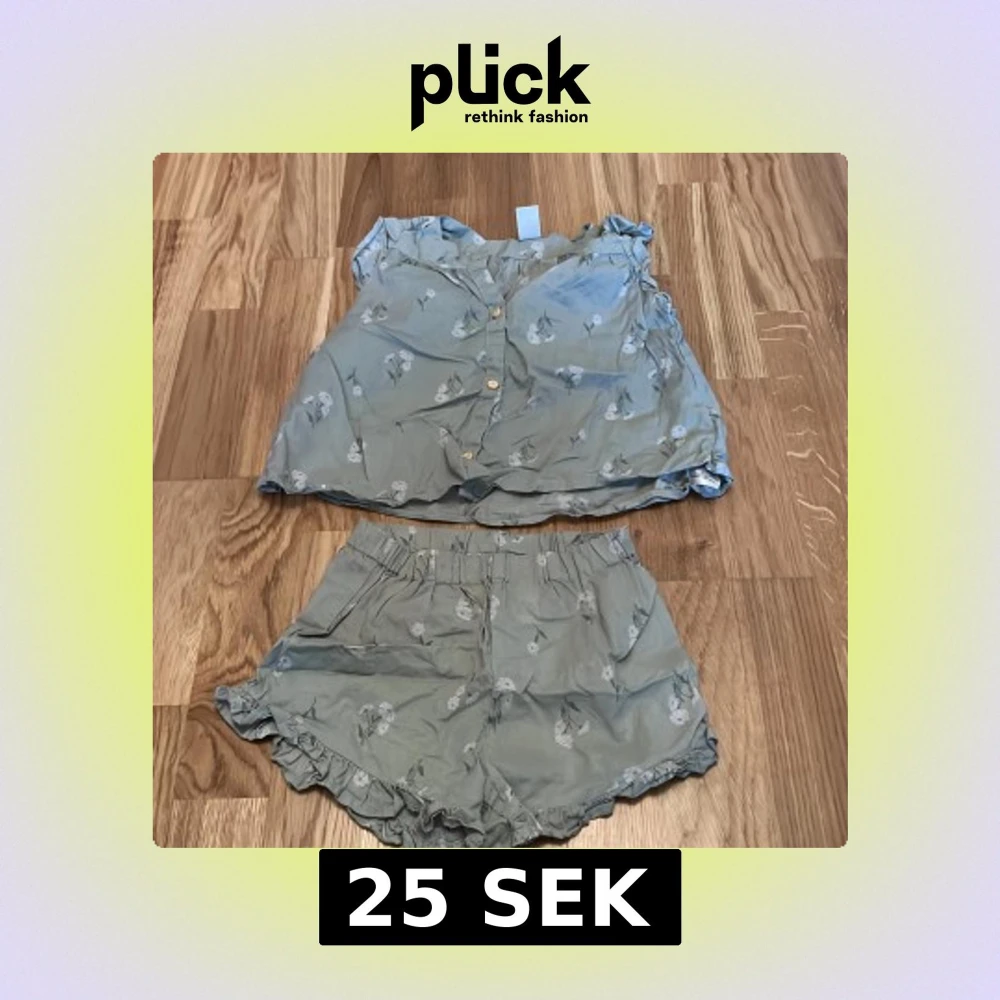 Säljer ett grönt set med blommönster från H&M. Shortsen har elastisk midja och volangdetaljer vid bensluten. Perfekta för varma sommardagar!