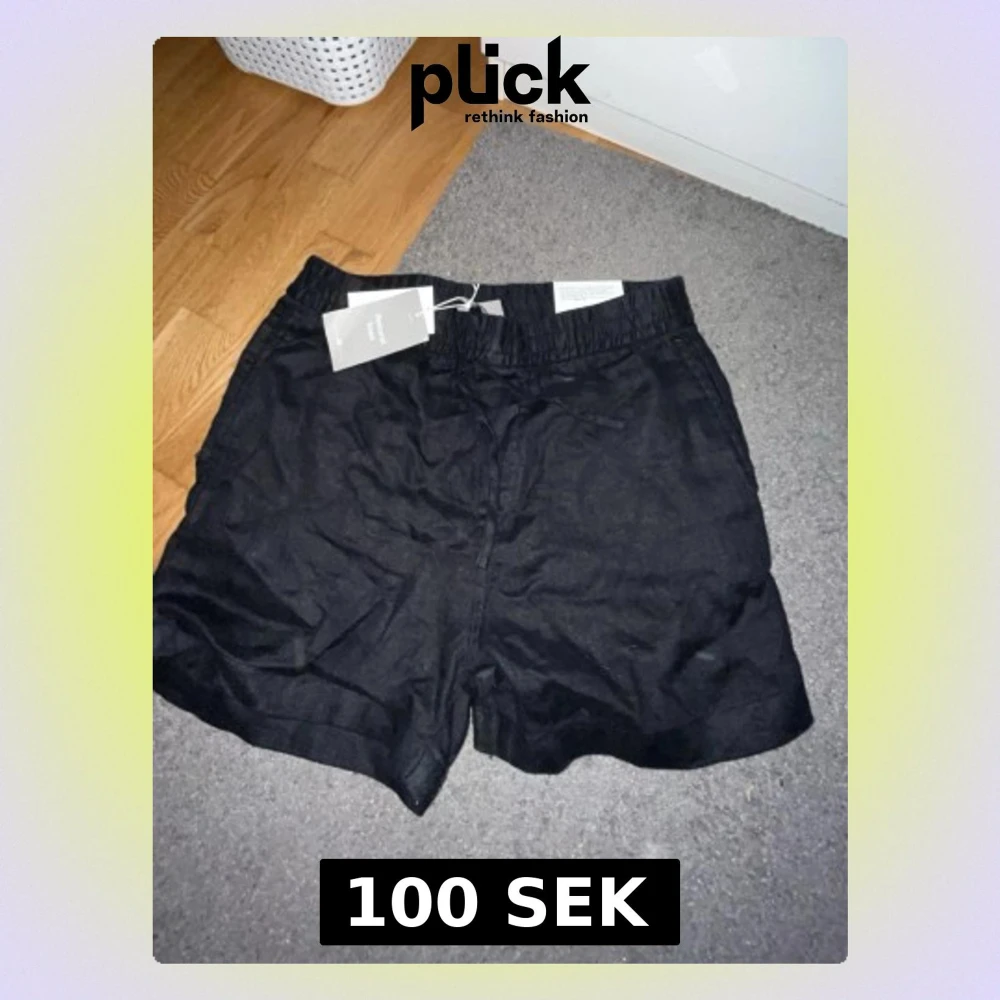 Säljer ett par svarta linneshorts från H&M Premium Selection. De har elastisk midja, regular fit och kort längd. Perfekta för varma dagar och riktigt sköna tack vare materialet i naturligt linne. Klassisk look med fickor både fram och bak. Storlek XS regular fit. Som ni ser så är prislappen kvar och dem är aldrig använda .