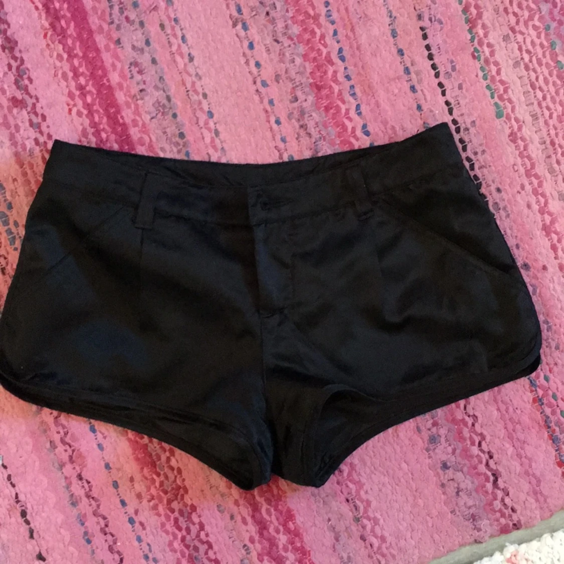 Glansiga shorts.