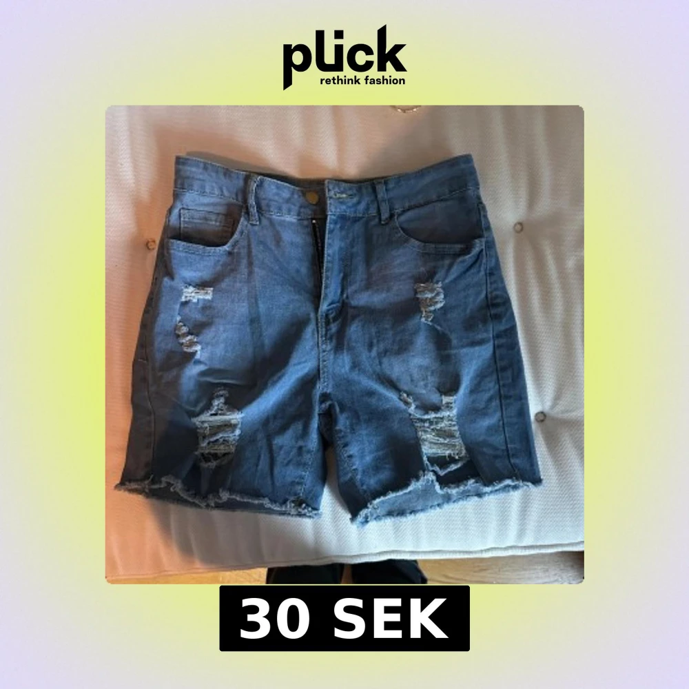 Snygga blå jeansshorts med slitna detaljer. Stretchiga och oanvända, endast testade. Köpt från shein