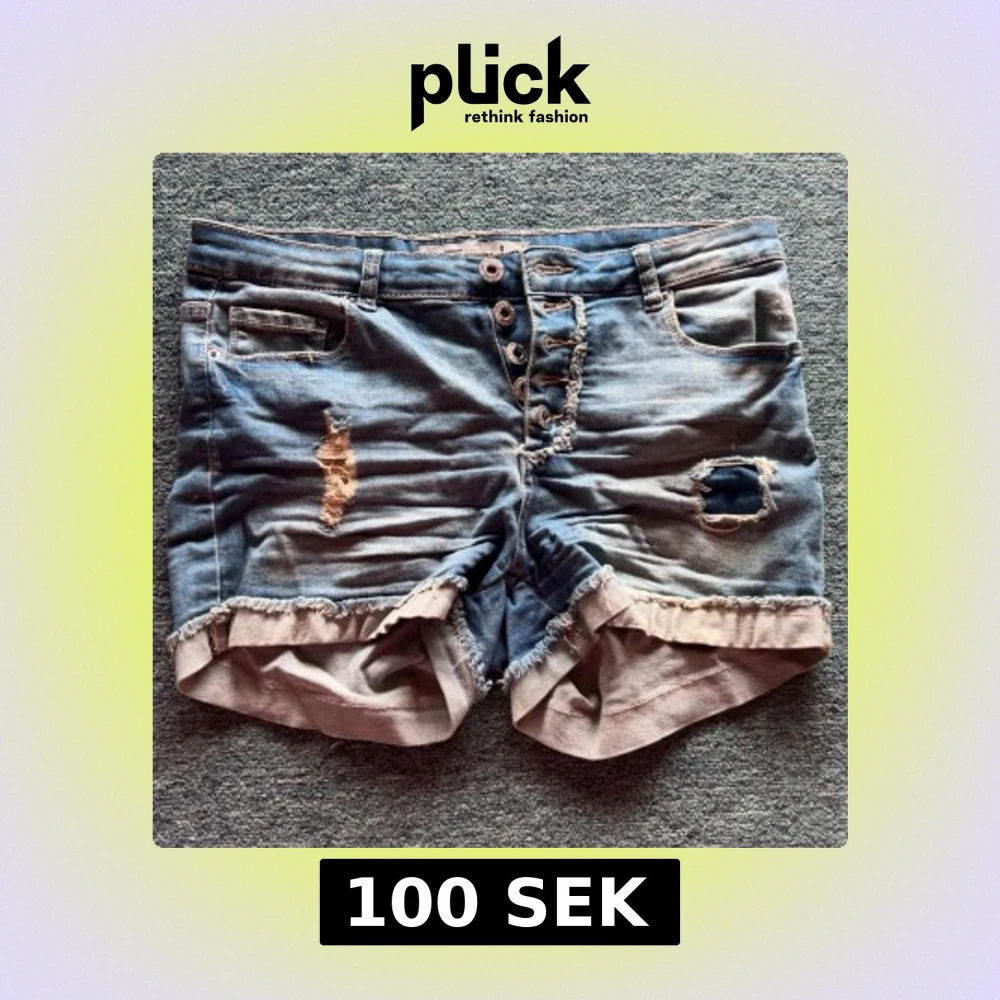 Snygga blå jeansshorts från FB Sister med slitna detaljer, fransig kant och flera knappar framtill. Klassisk femficksmodell och upprullade benslut. Perfekta för en avslappnad sommarstil.
