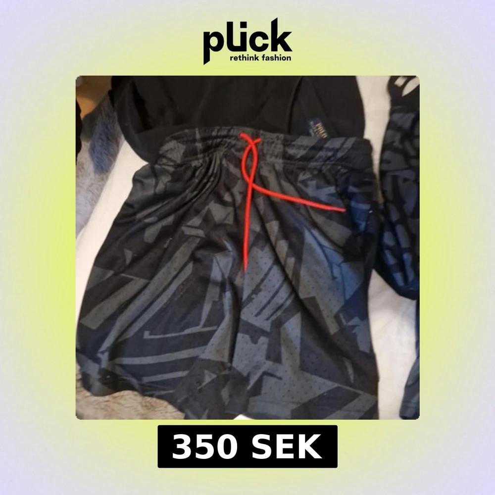 Svarta meshshorts från Jordan x PSG med grått grafiskt mönster och röd snörning i midjan. Shortsen har elastisk midja och patch med logga på benet. Perfekta för sport eller chill, riktigt snygg streetstil.köpt från nike hemsidan gamla men knappt använda ny pris var runt 600 mitt pris 350 pris kan diskuteras vid snabbaffär