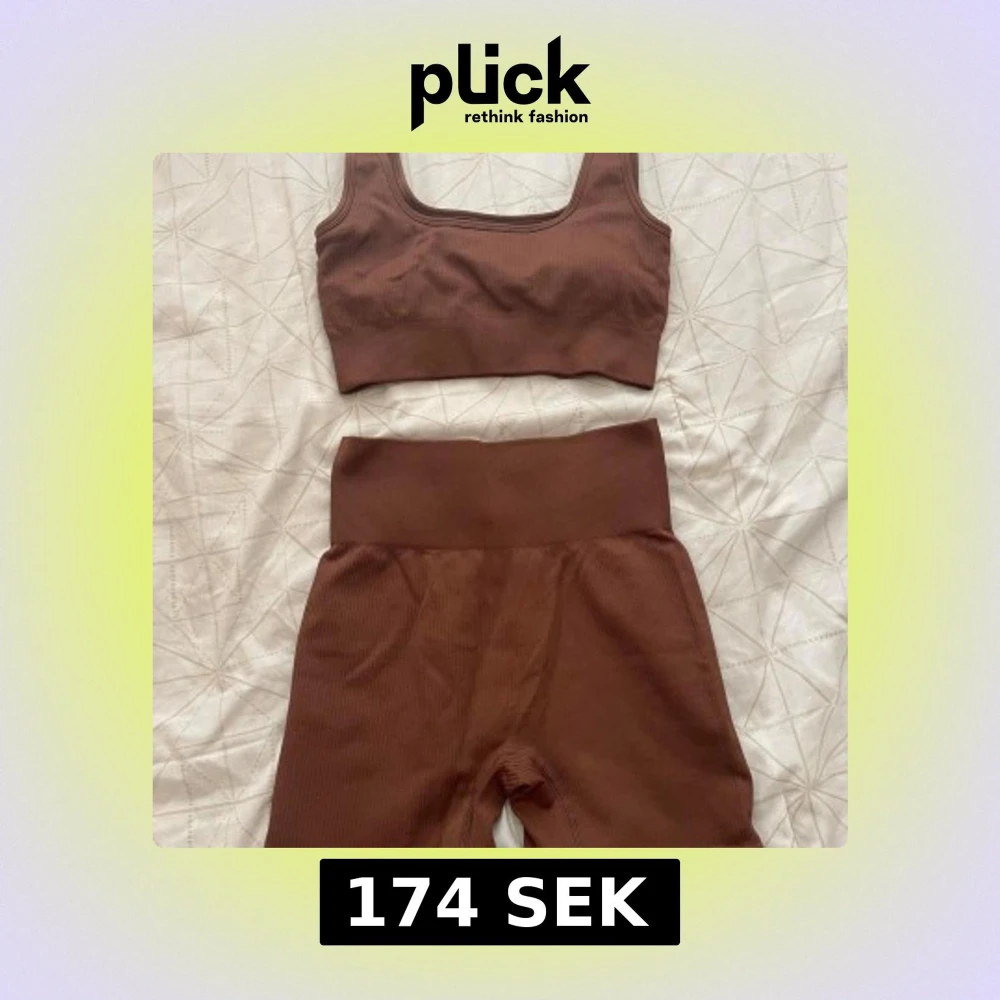 Amazon träningsset i brunt. Sport-bh/linne och shortsset. Riktigt stretchigt med fin passform. Aldrig använd sitter mer som en storlek M än L.