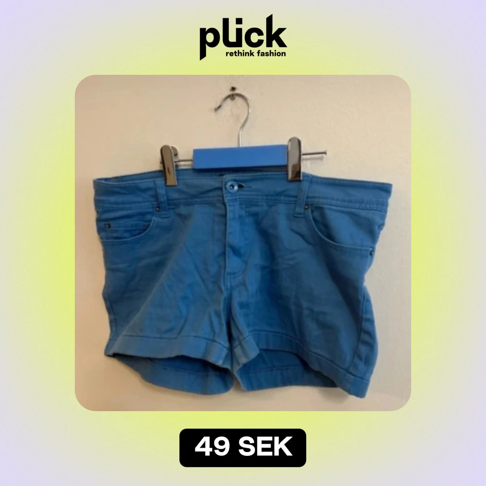 Kortare shorts med låg midja i storlek L. I mycket bra skick. Inget att anmärka på. Mått Midjebredd 38cm Längd från midja 26cm
