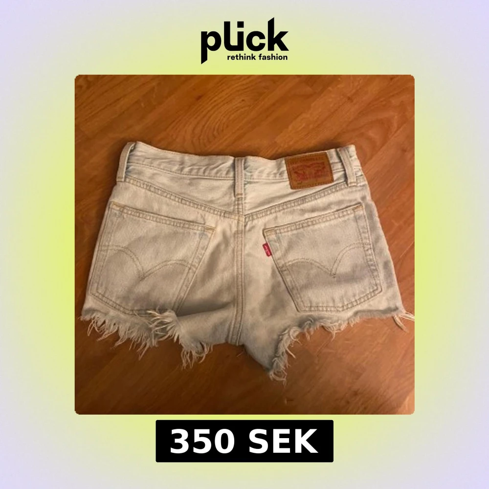 Snygga ljusblå jeansshorts från Levi's 501 med medelhög midja och råa fransade kanter. Klassisk femficksmodell med knappgylf och ikonisk läderpatch bak. Perfekta för sommaren och ger en avslappnad vibe till din outfit. Sänker pris vid snabb affär