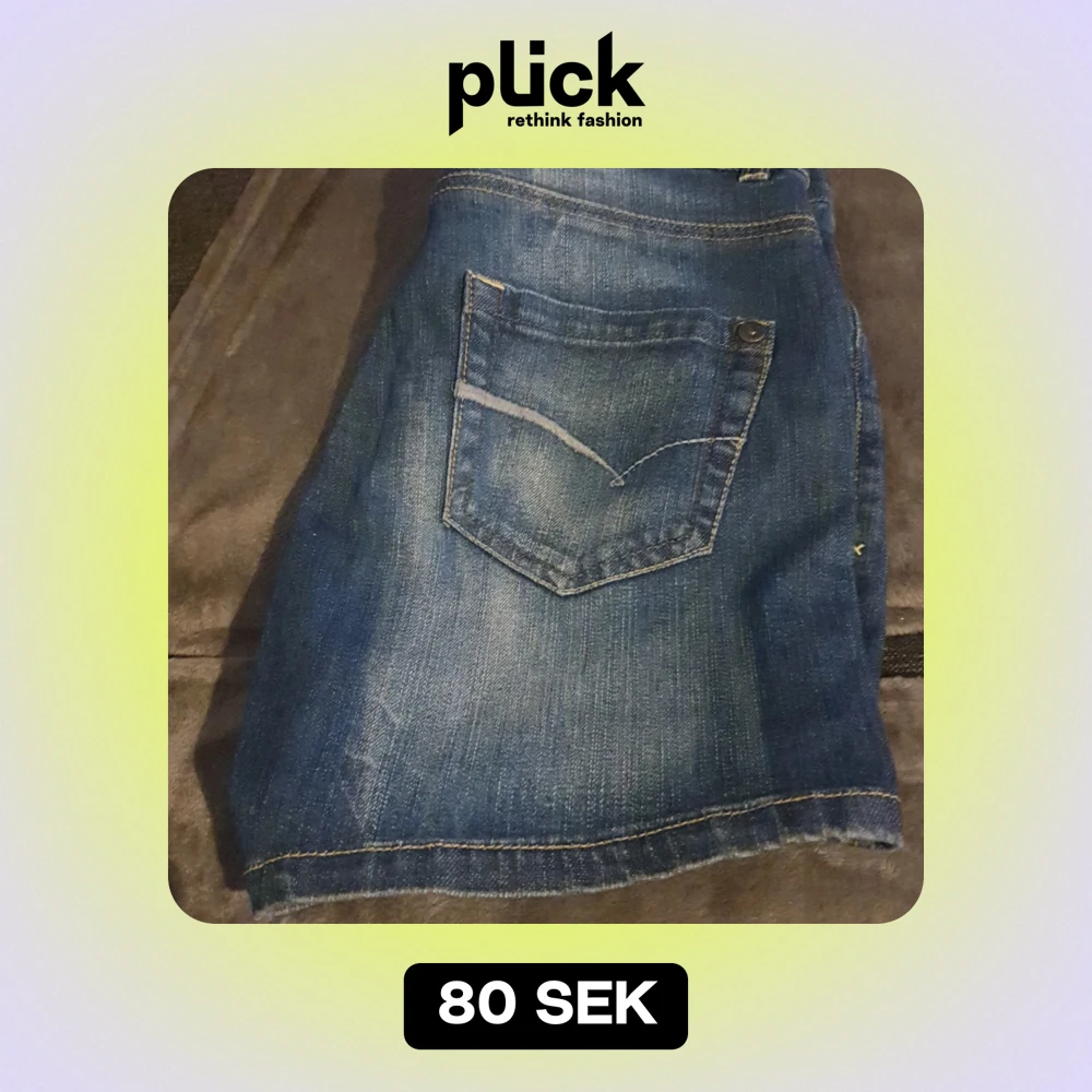Säljer en snygg blå jeans shorts i bra skick. Klassisk femficksdesign och en bekväm passform. Perfekt för vardagsbruk eller en avslappnad dag ute. Den är i en kort modell och har en lätt slitning för en trendig look.