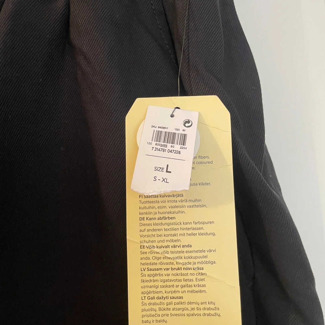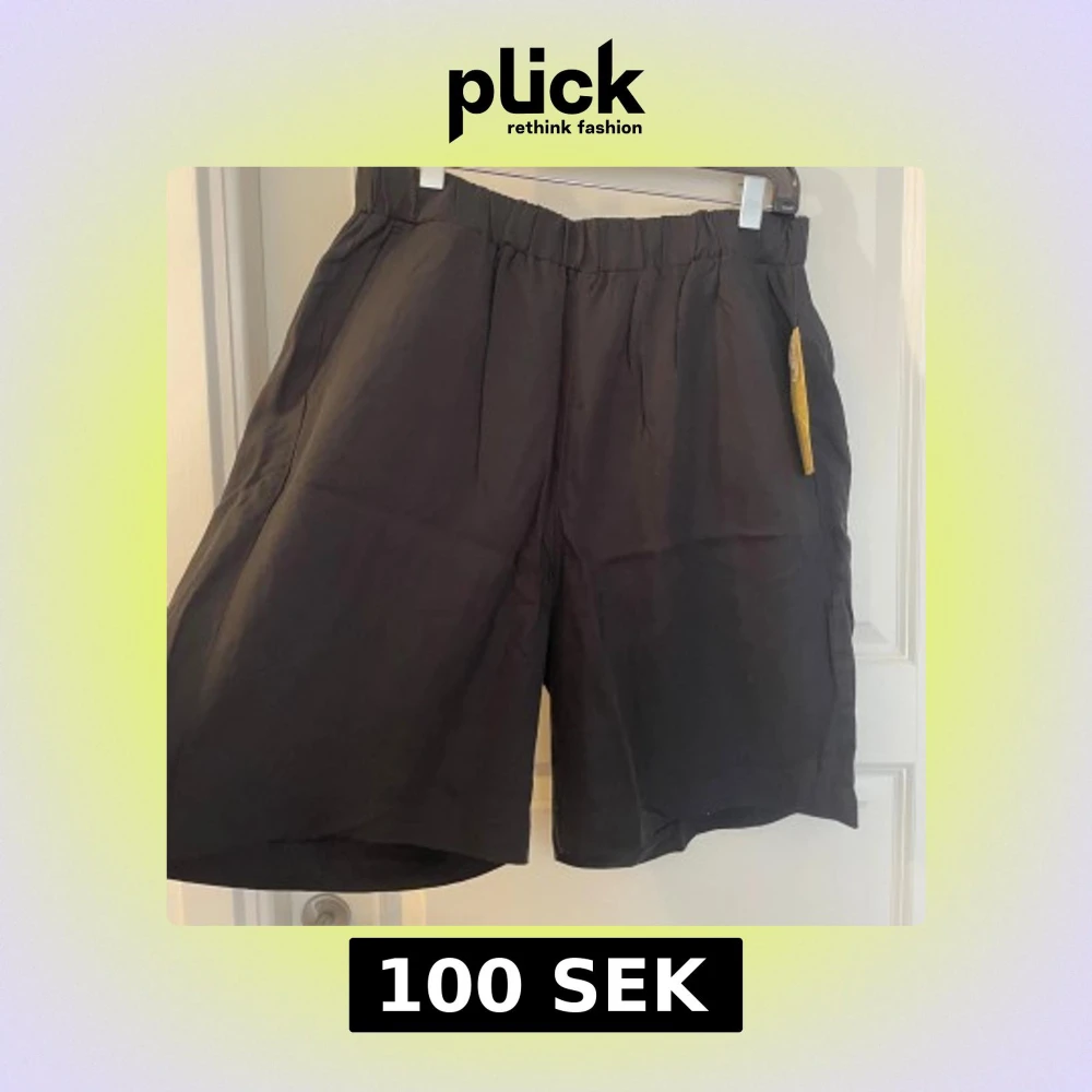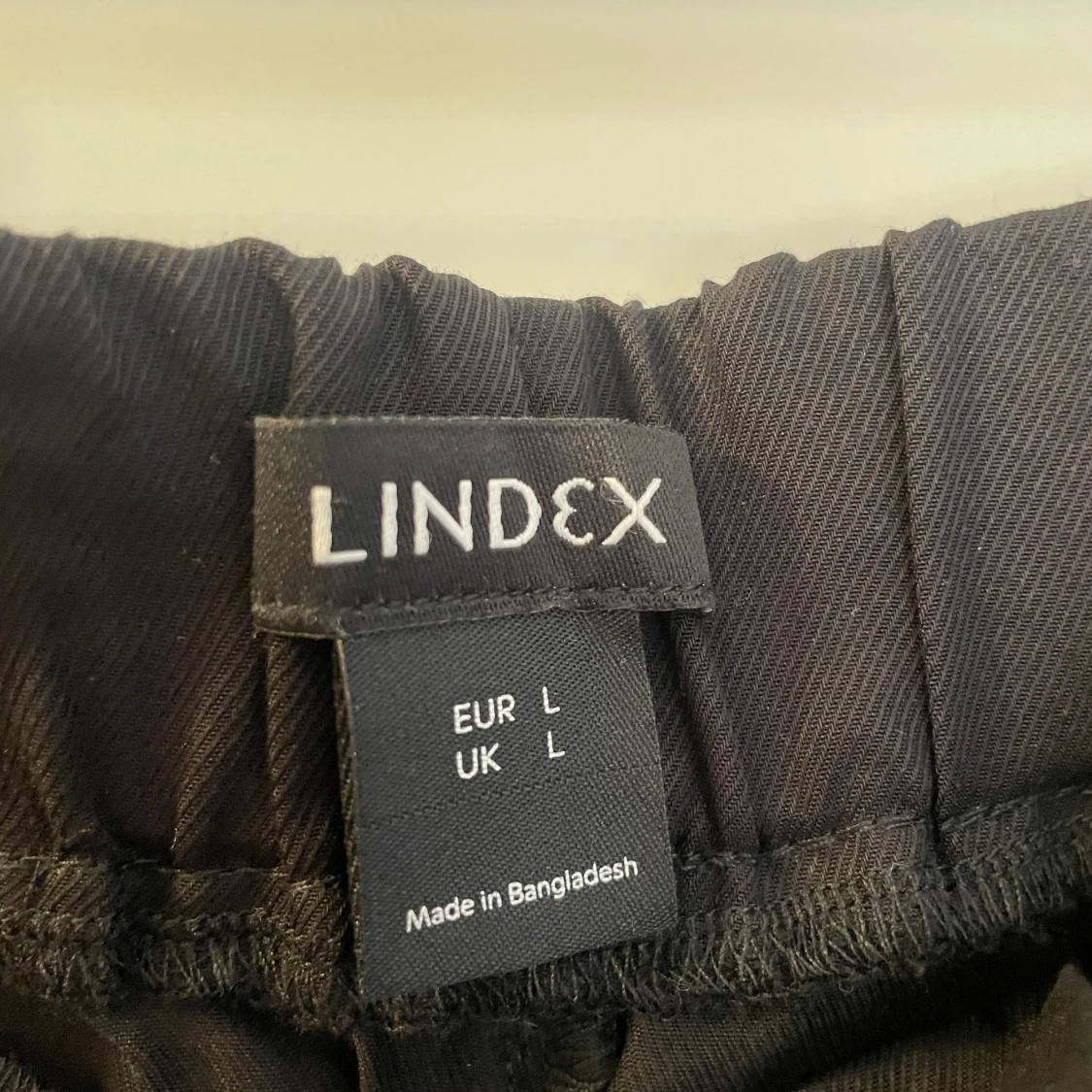 Svarta shorts från Lindex i storlek L. De har en avslappnad passform med resår i midjan och är tillverkade i ett mjukt, lätt tyg som passar perfekt för varma dagar. Klassisk design utan mönster och med diskreta fickor i sidorna.