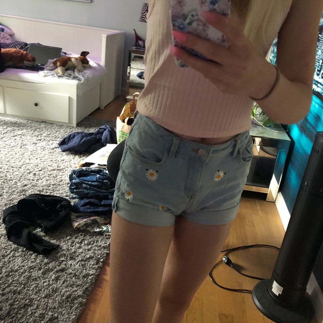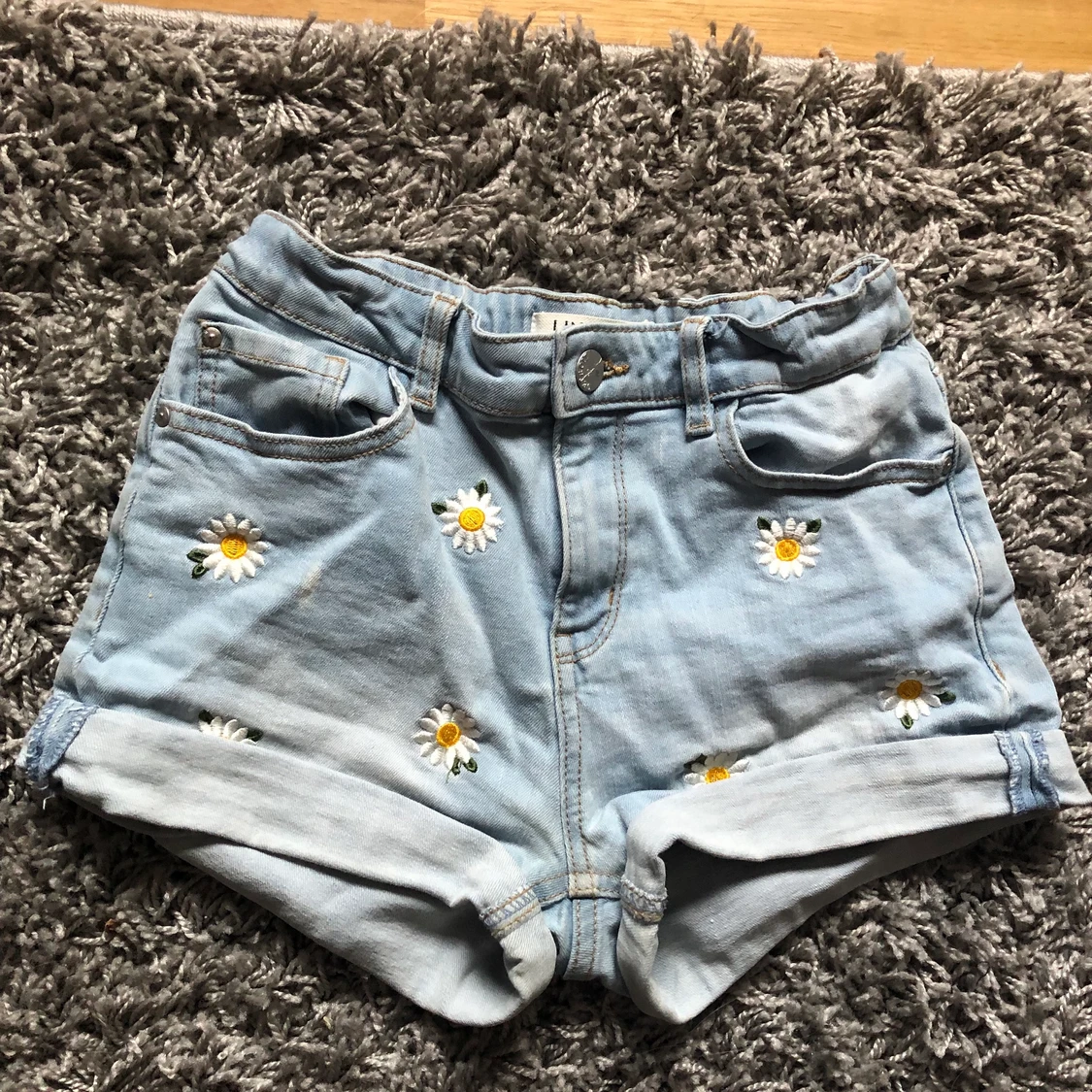 Somriga shorts med blommor pĂ„đ» köpta pĂ„ Lindex. Finns nĂ„gra fĂ„ flĂ€ckar pĂ„ vĂ€nster bakficka men inget man lĂ€gger mĂ€rke tillâșïž storlek 146-152 men passar mig i xs.