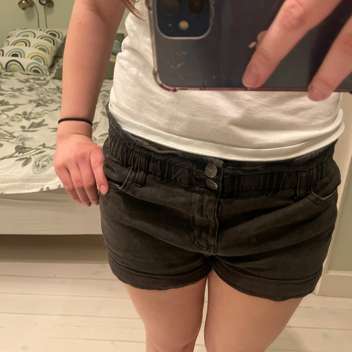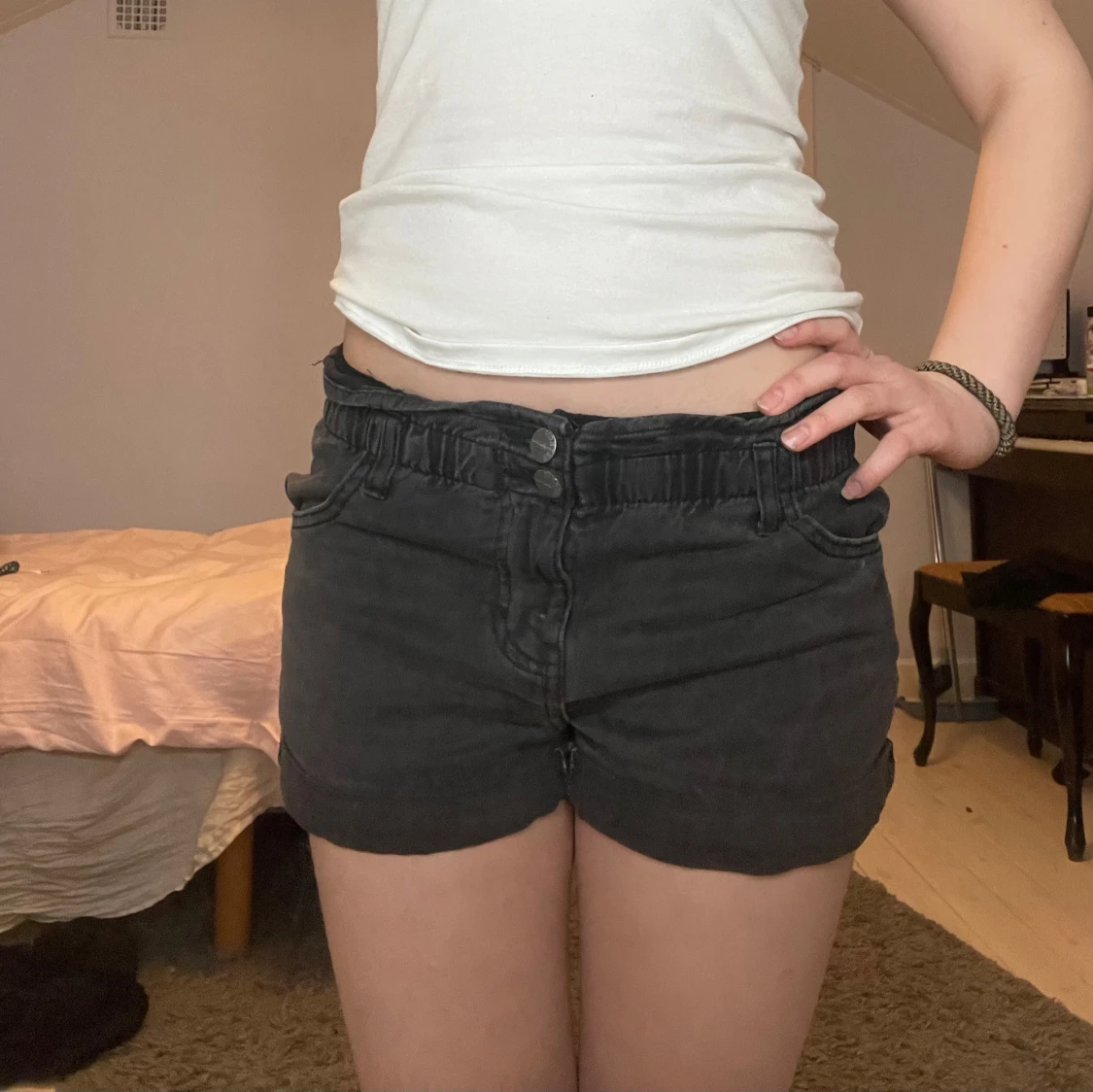 Snygga svarta shorts från Lindex med dubbelknapp 💕 Strl 146 men väldigt stretchiga så passar mig som är 163 💞💞