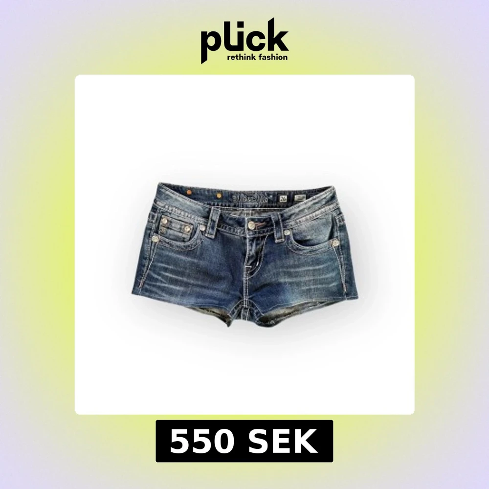 Säljer dessa lowrise jeansshorts från Miss Me, storlek 26 (passar ett S enligt mig) Mått: midja över: 37cm och total längd: 25cm. Hör gärna av dig om du har frågor om andra mått eller detaljer! De är sydda till shorts därför säger modellen fortfarande skinny💞