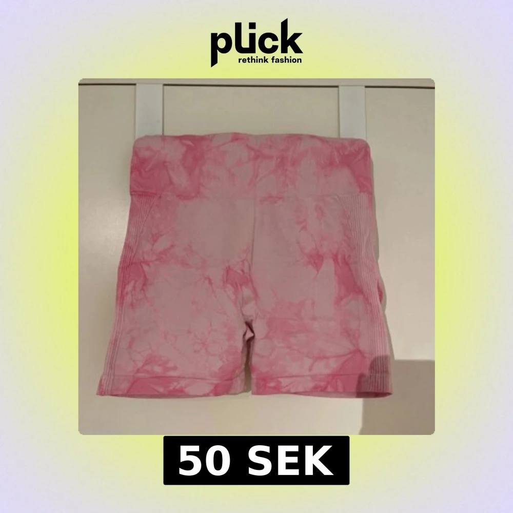 Säljer ett par rosa sömlösa shorts med batikmönster och hög midja. De har ribbade detaljer i midjan och längs sidorna samt scrunch-effekt bak. Perfekta för gymmet eller yoga!