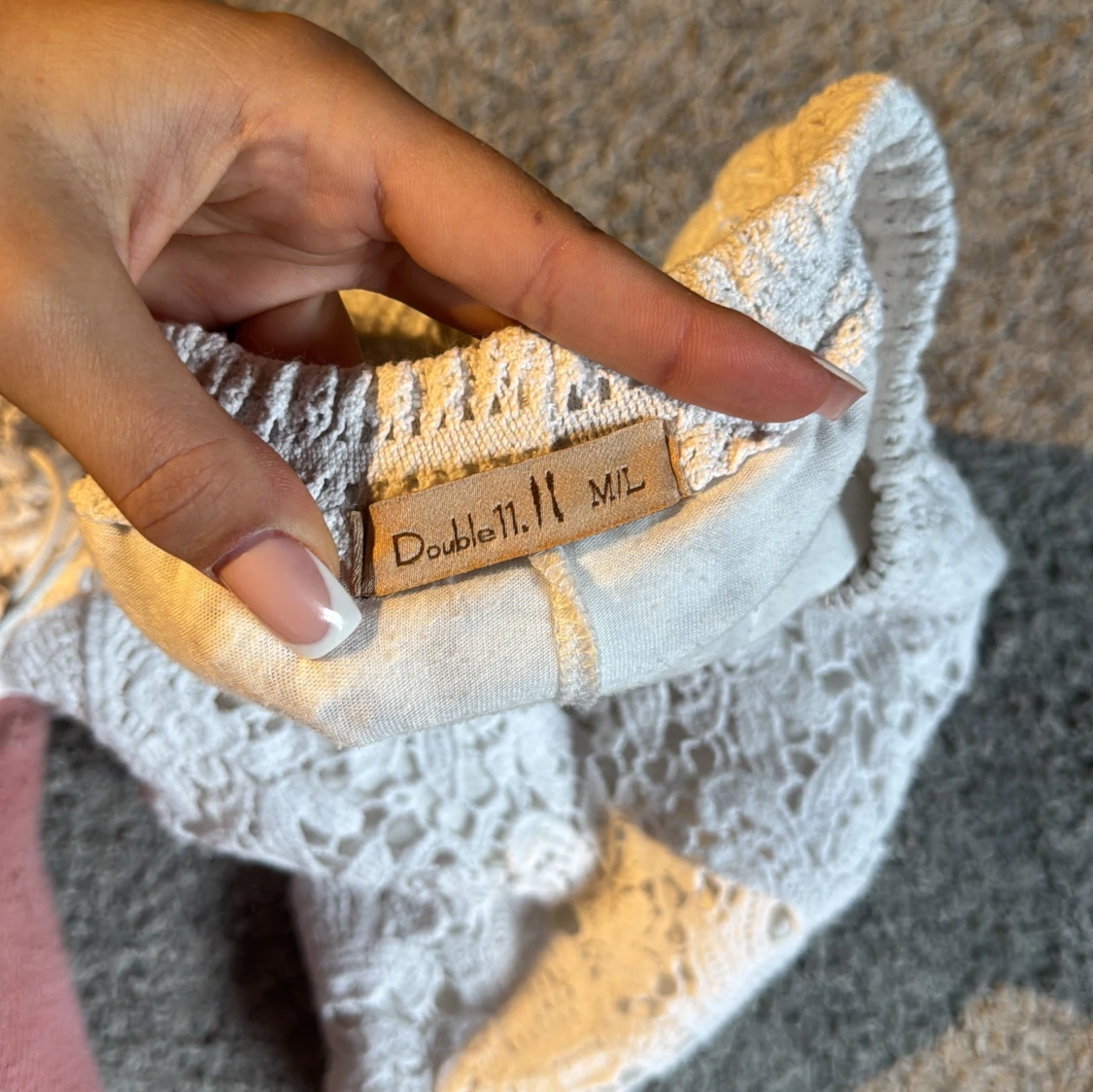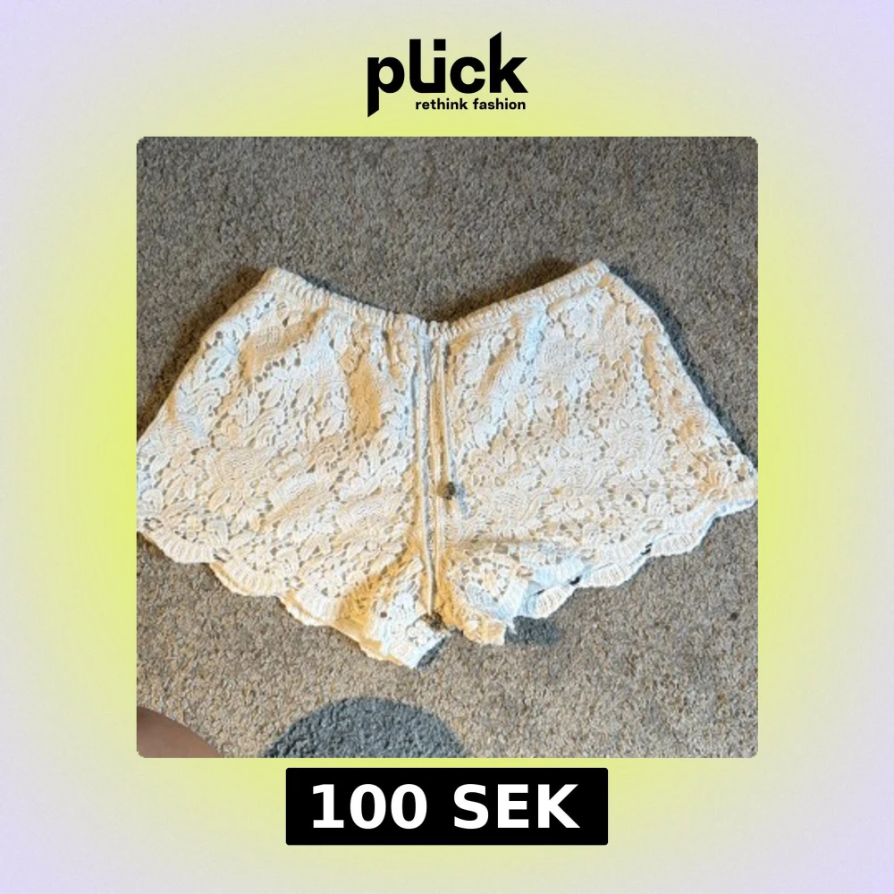 Superfina vita shorts från Double11.11 i spets med blommigt mönster och snygg snörning i midjan. De har elastisk midja och vågig kant nertill för en extra söt look. Är storlek M/L men skulle säga att dom passar S/M