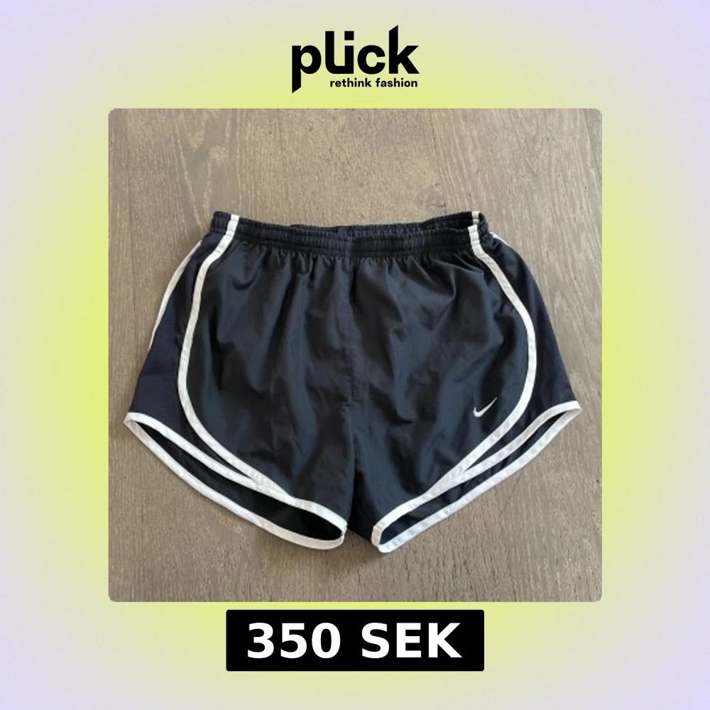 Svarta träningsshorts från Nike med vit kant längs sidorna och liten vit logga framtill. Shortsen har elastisk midja och är tillverkade i ett lätt syntetmaterial som andas. Perfekta för löpning eller gym.