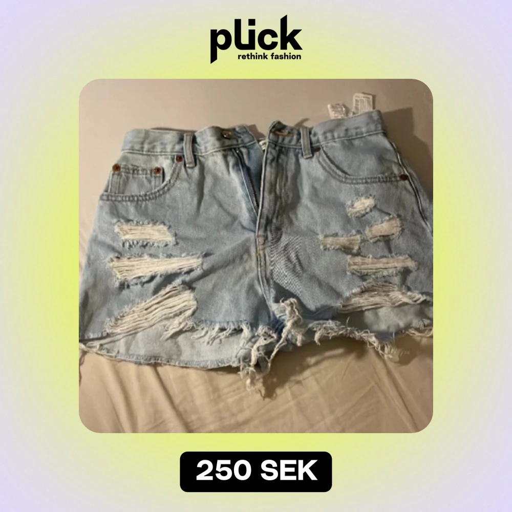 Lågmidjade jeansshorts med slitningar - Snygga blå jeansshorts med låg midja och fransig kant. Shortsen har slitna detaljer framtill och bakfickor med dekorativa sömmar. Perfekta för sommaren och ger en cool, avslappnad vibe. Klassisk femficksmodell i mjuk denim.  Skriv till mig om ni vill ha fler bilder!💗💗