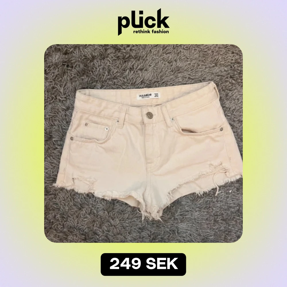 Somriga krämvita shorts från pull&bear, passar s till xs. Sitter lågmidjat! Skriv till mig om ni var frågor