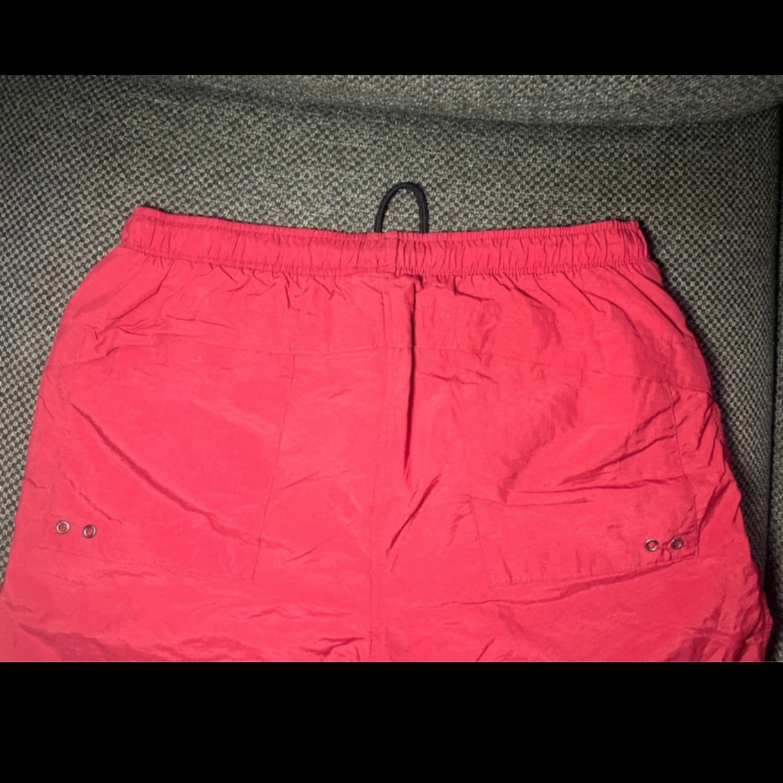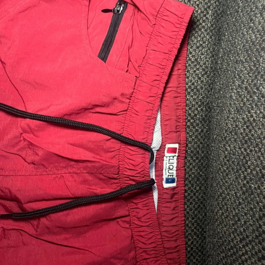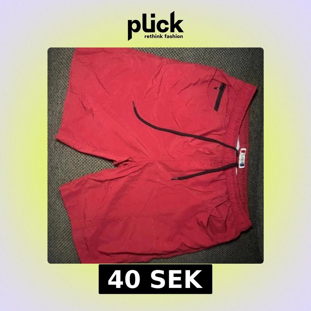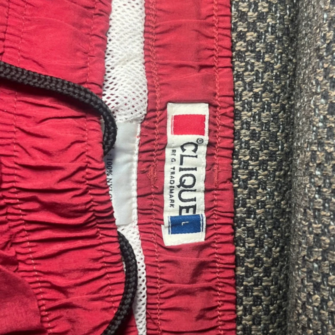 Röda badshorts från Clique i storlek L. De har elastisk midja med svart snörning, meshfoder och praktisk ficka med dragkedja fram. Shortsen är tillverkade i lätt syntetmaterial och har ventilerande hål bak. Perfekta för stranden eller poolen!