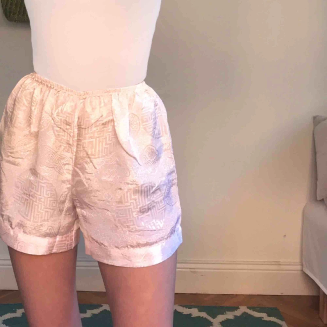 Högmidjade shorts med fint mönster i puderrosa färg. Sitter åt med resår i midjan. Lite genomskinliga. Funkar som både pyjamas byxor och vanliga shorts! Möts på södermalm, frakt tillkommer 💞💞💞