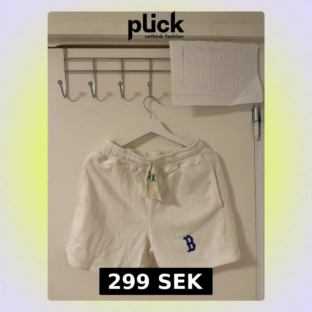 Säljer ett par vita shorts från MLB i storlek S. De har en broderad blå B på framsidan, grön snörning i midjan och en bakficka. Mjukt material och elastisk midja gör dem riktigt sköna. Perfekta för chill dagar och sportiga outfits.Liknande modell som originala.