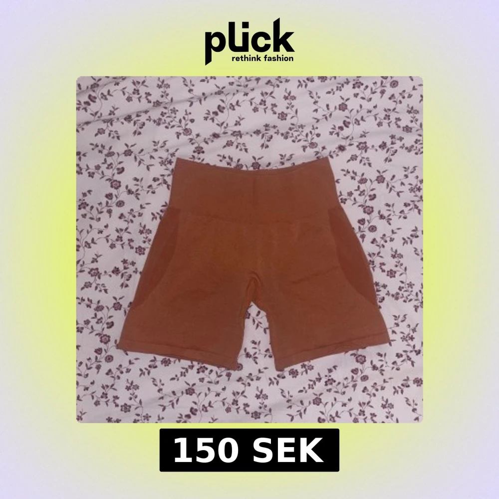 Orange shorts med hög midja och bred linning. Shortsen är i stretchigt material och har en tight passform som sitter bekvämt.