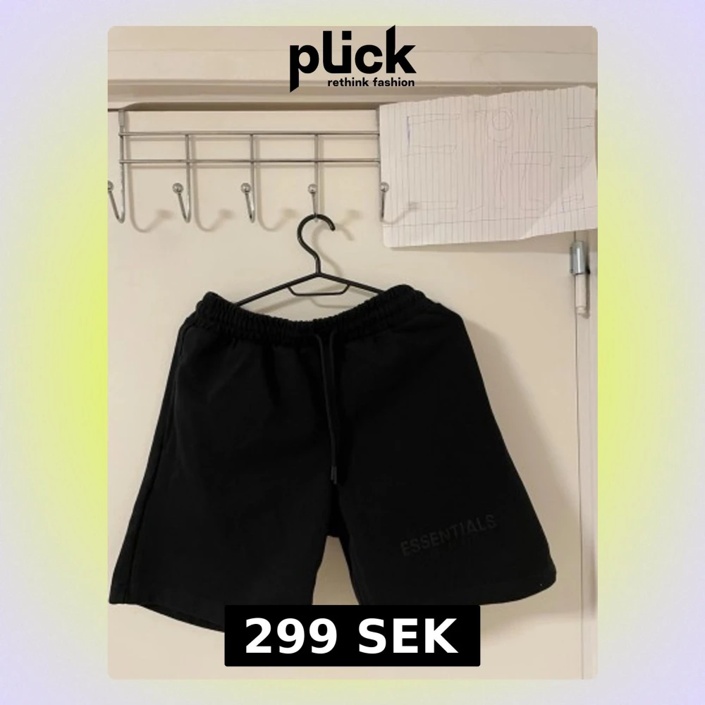 Svarta shorts från Essentials med elastisk midja och snörning framtill. Mjukt material och enkel design med diskret logga på benet. Har en bakficka och avslappnad passform som är perfekt för chill dagar eller träning.