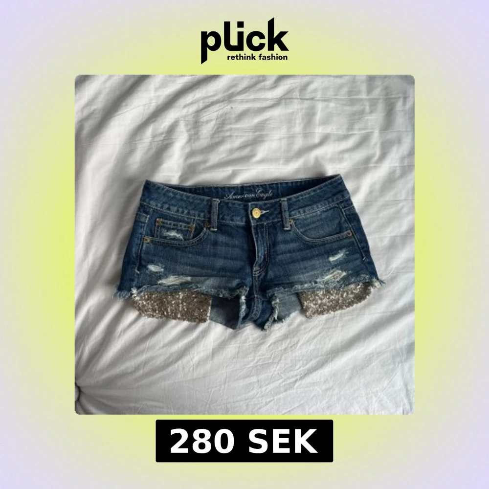 Lågmidjade och korta shorts. Unika med paljettfickor, perfekta! Midjemåttet är 39 cm, grenmåttet 19 cm💜