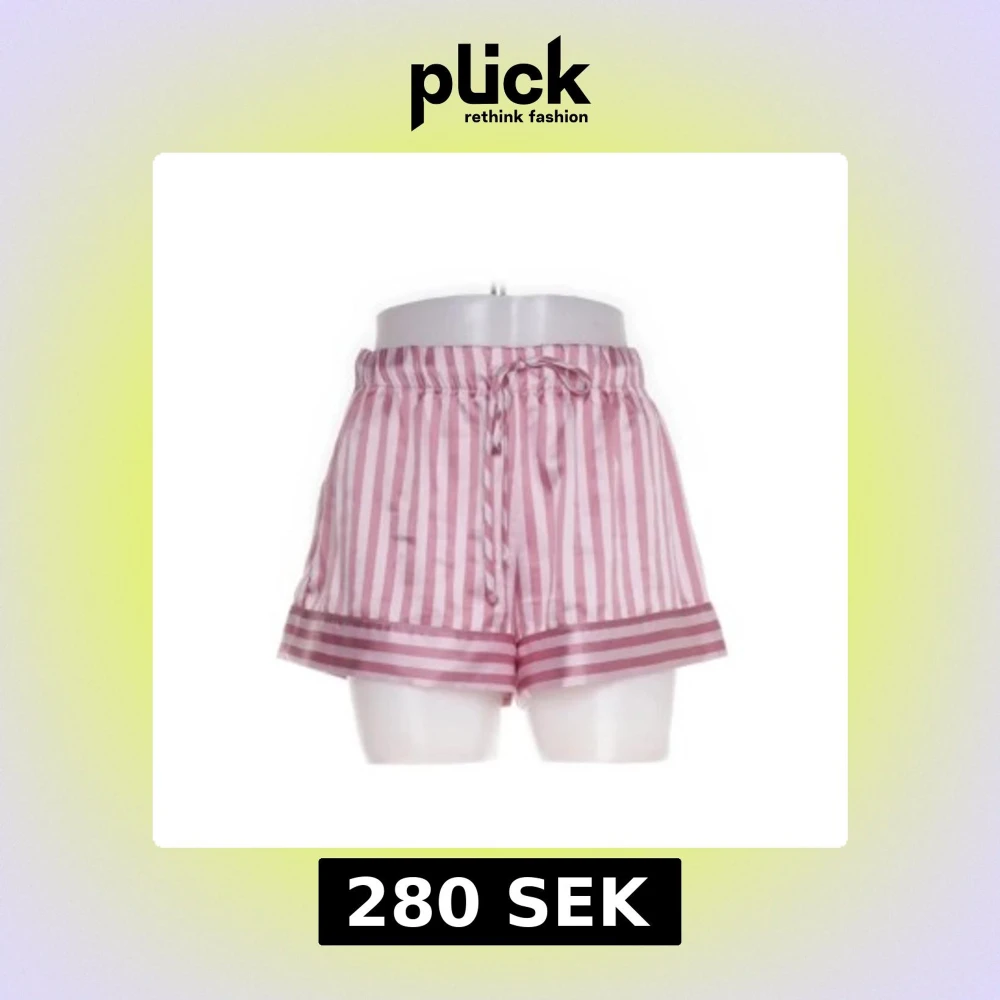 Silkiga rosa och vita randiga pjamas shorts från Victoria's Secret. De har en bekväm passform med knytband i midjan och är perfekta för en avslappnad stil. Tillverkade i ett mjukt och glansigt material.