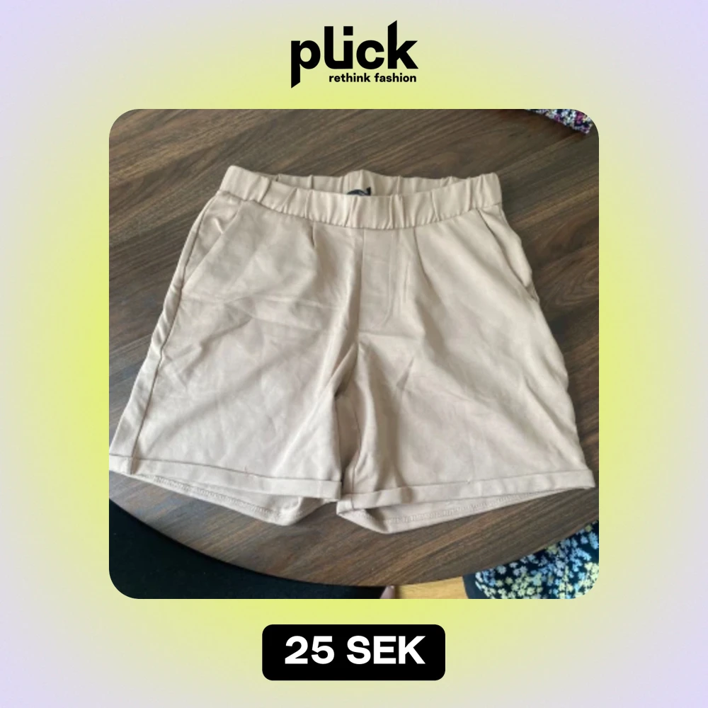 Säljer ett par snygga beige shorts i normal passform. De har en elastisk midja och två fickor bak. Perfekta för en avslappnad sommarlook!