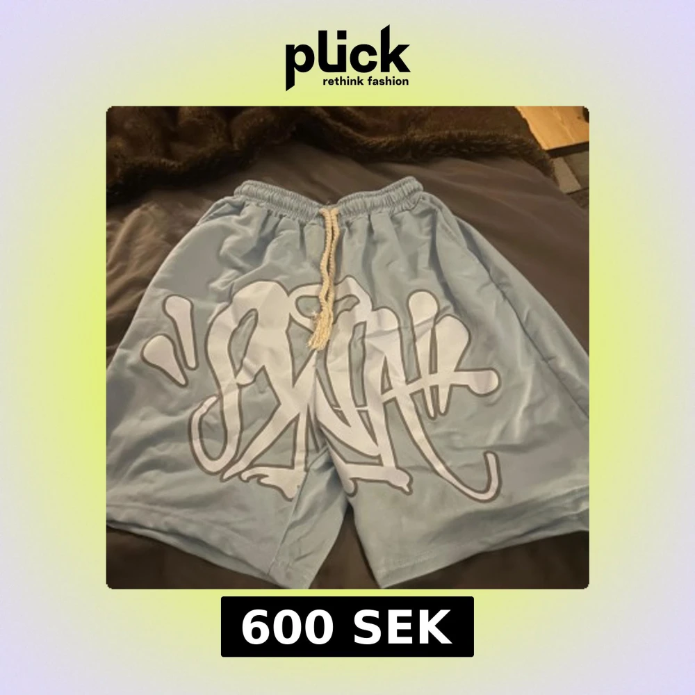 Ljusblå syna world shorts med stort vitt graffiti-inspirerat tryck framtill. Materialet är mjukt och lätt, perfekt för varma dagar. Tröjan kan köpas som set med shortsen eller separat. Priset kan diskuteras vid snabb affär.