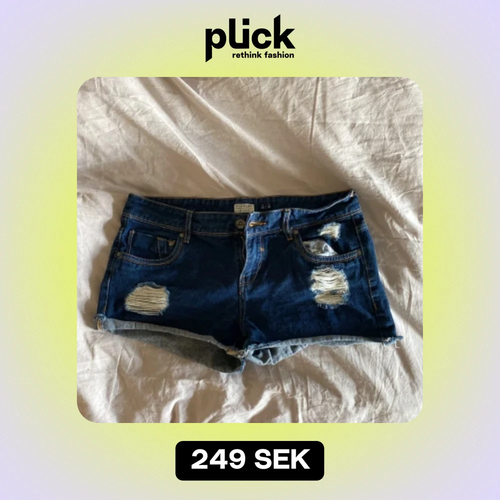 Snygga jeansshorts med slitningar. Passar S-M beroende på hur man vill att de ska sitta. Pris går att diskutera