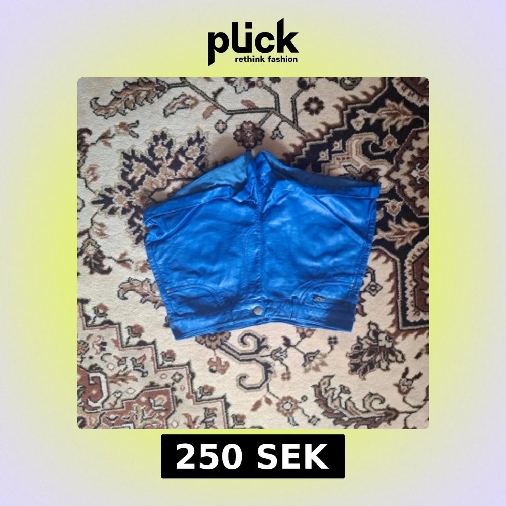 Snygga blåa shorts i skinnimitation med fickor både fram och bak samt knapp och dragkedja framtill. Perfekta för dig som vill sticka ut med en färgstark look.