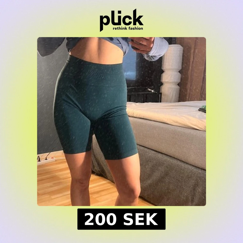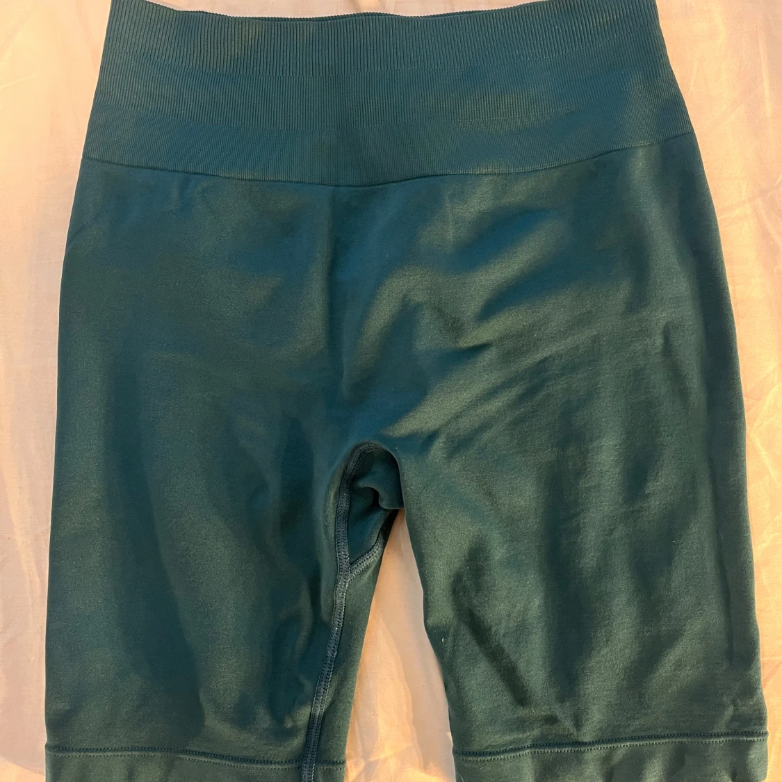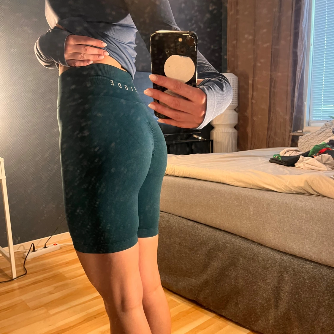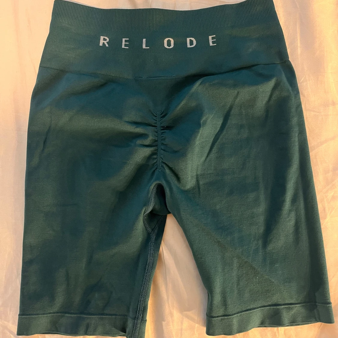 Snygga mörkgröna biker shorts från Relode med hög midja och tight passform. De är tillverkade i mjukt och stretchigt syntetmaterial, perfekta för träning. Baktill finns en scrunch-detalj som framhäver formen och loggan är tryckt i vitt på linningen.