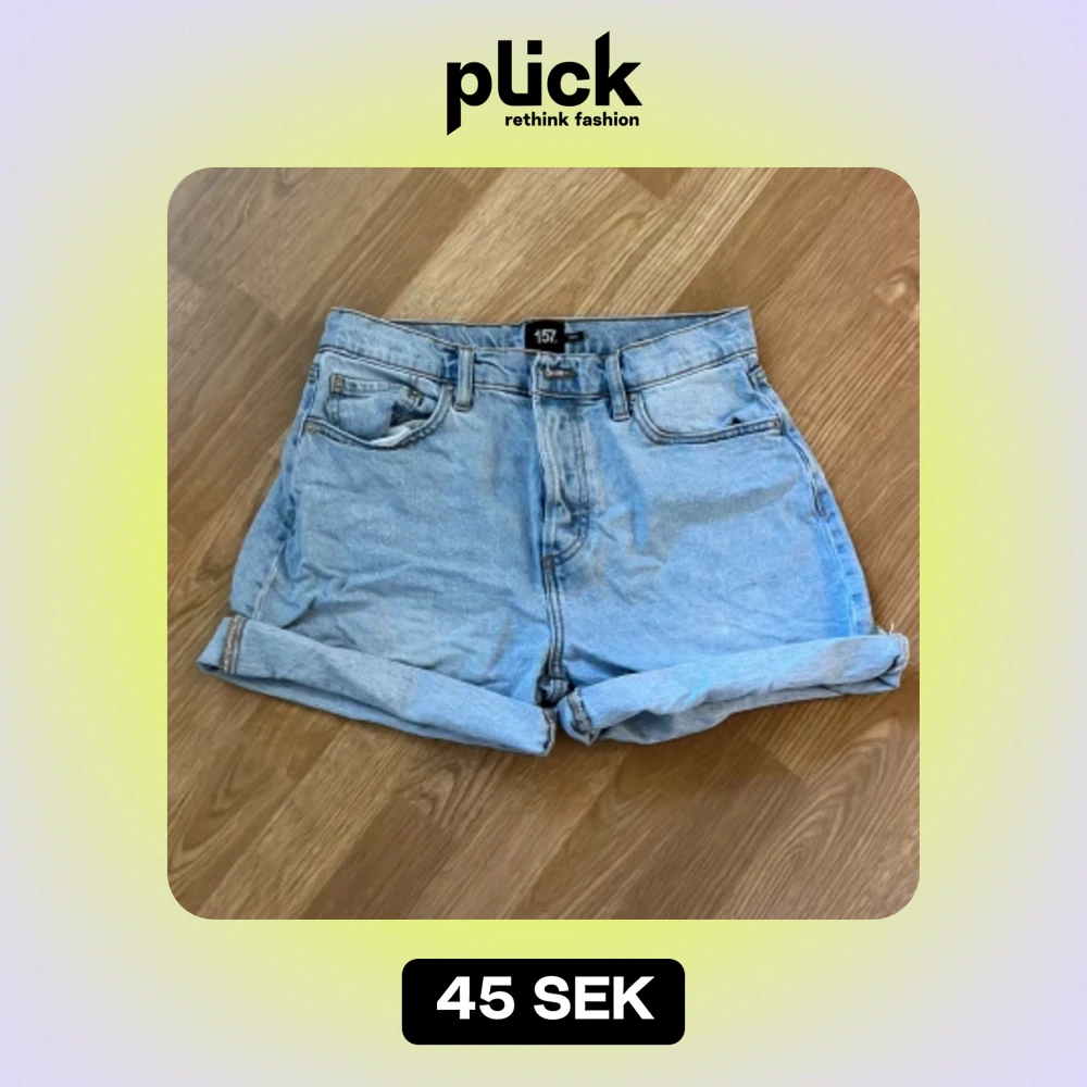 Säljer ett par ljusblå jeansshorts från 157. De är i nyskick och har en normal passform. Shortsen är uppvikta vid benen för en avslappnad look. Perfekta för sommaren!