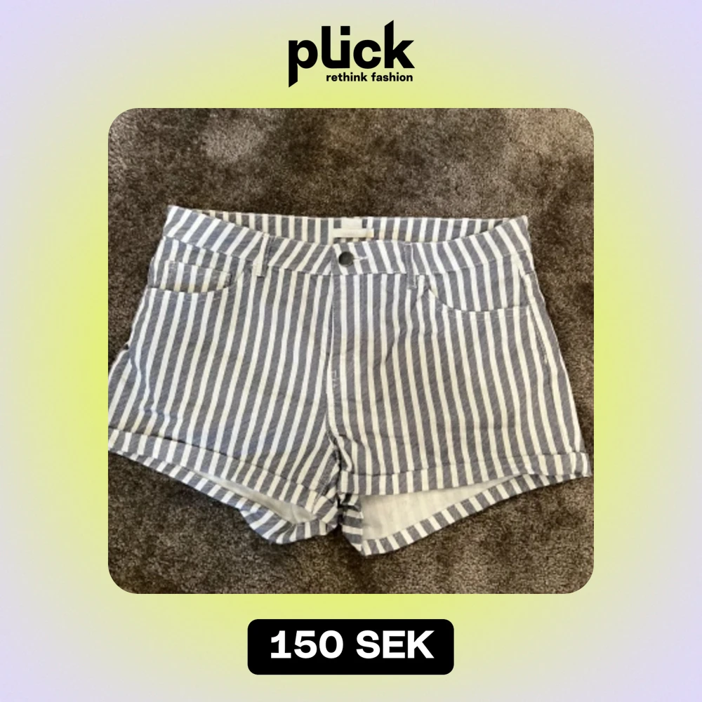 Jätte snygga randiga shorts! Dem har inte kommit till användning och därför väljer jag att sälja dem! Byxorna är i färgen blå och vit💙🤍